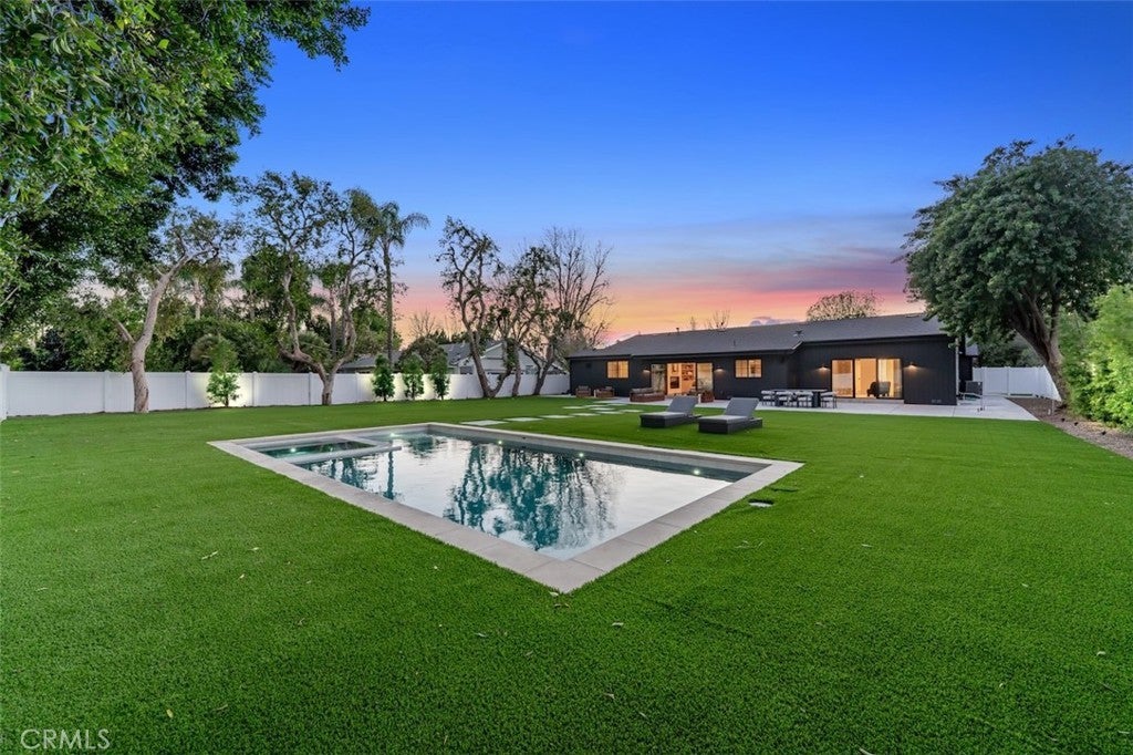 Welcome to this completely reimagined estate in the highly sought-after Sherwood Forest neighborhood of Northridge. Rebuilt from the studs with exceptional craftsmanship and attention to detail, this 2,692 sq ft residence sits on an expansive 17,665 sq ft lot, offering privacy, space, and true indoor-outdoor California living. This stunning home features 4 bedrooms and 3.5 bathrooms, thoughtfully designed with an open-concept layout and elevated designer finishes throughout. The custom luxury kitchen serves as the centerpiece of the home, showcasing high-end appliances, custom cabinetry, premium countertops, and a seamless flow into the living and dining areas perfect for both entertaining and everyday living. The spacious primary suite offers a spa-inspired bathroom and generous closet space, while the additional bedrooms provide flexibility for family, guests, or a home office. Step outside to your brand-new resort-style pool, surrounded by a large private yard with endless potential for entertaining, expansion, or ADU possibilities (buyer to verify). Located on a beautiful tree-lined street in one of Northridge’s most prestigious pockets, this turn-key property blends modern luxury with timeless design a rare opportunity in Sherwood Forest.