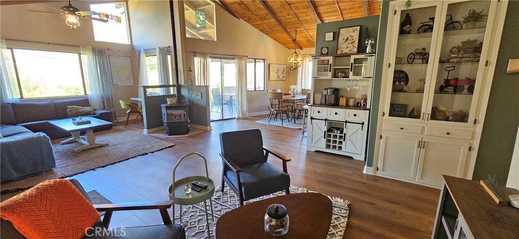 Move in ready home with breathtaking views surrounding the property! The home is welcoming, bright, and airy with view from every window. Enjoy outdoor living on the large deck with built-in BBQ, perfect for entertaining or relaxing in nature. Located minutes from the river and close to shops, restaurants, and markets. During seasonal months, a charming creek runs below the home, enhancing the peaceful setting. The home has many upgrades, including new flooring, walk in closet, pantry, and more with a cozy pellet stove for added charm. A rare opportunity to enjoy space, scenery, and convenience in the heart of Kernville.
