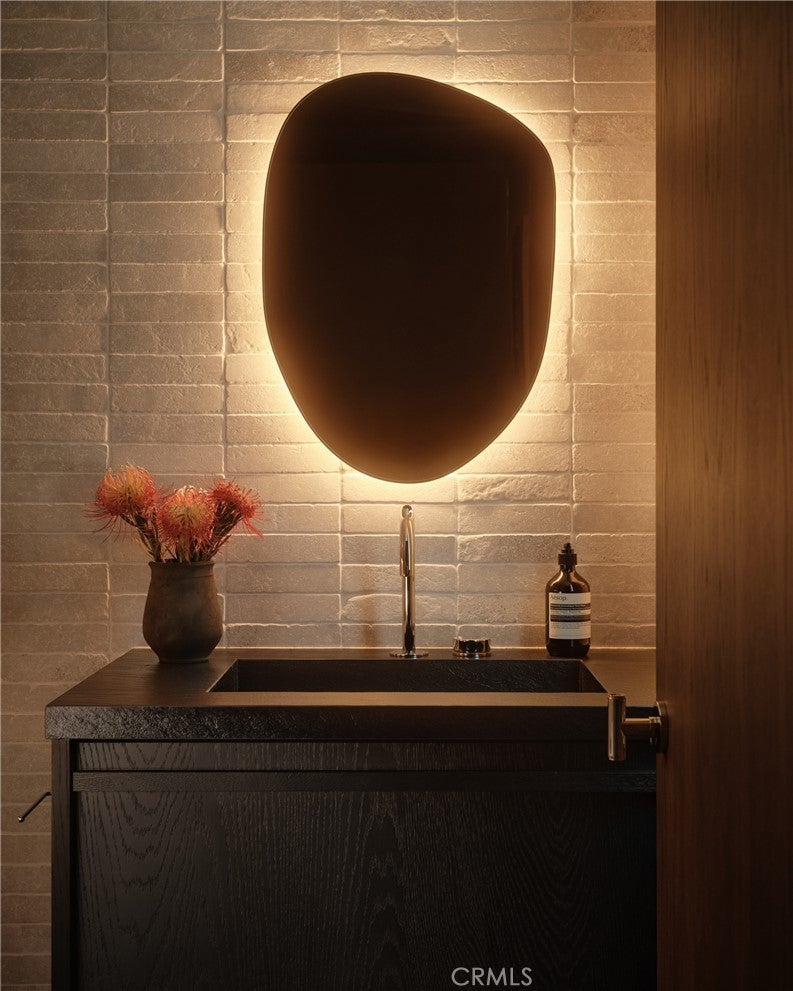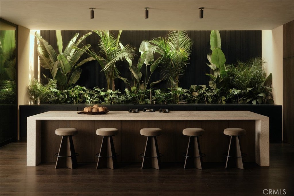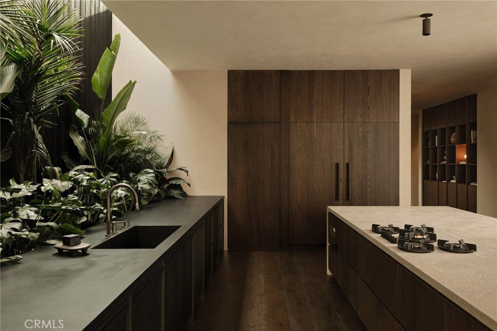 Hidden behind layers of lush tropical foliage, Obsidian House emerges as a private sanctuary shaped by elemental contrast and quiet strength. Clad in charred Shou Sugi Ban wood and volcanic lava stone, the residence feels as though it has been carved directly from the landscape itself—bold yet restrained, dramatic yet deeply serene. Spanning over 5,500 square feet, the home offers five ensuite bedrooms, a media room, and 5.5 bathrooms, thoughtfully designed to create a sense of both openness and retreat. Inside, the architecture dissolves the boundary between indoors and out. Floor-to-ceiling windows and doors frame layers of tropical greenery, allowing filtered light to move through the home while creating a constant dialogue between shadow and sun. Natural materials anchor the interiors with warmth and depth. Dark-stained white oak floors and custom oak carpentry are paired with natural stone, soft plaster walls, and carefully integrated lighting that disappears into the architecture. A dramatic 24-foot skylight above a living planter in the kitchen draws daylight deep into the home, reinforcing the seamless relationship between nature and design. The experience extends beyond the interiors. Integrated planters throughout the architecture, a koi pond, and lush tropical landscaping transform the grounds into a forest-like oasis, while a pool and outdoor living spaces create a private environment designed for both relaxation and entertaining. Located south of Ventura Boulevard in one of Studio City’s most desirable pockets, the property sits just moments from Harvard-Westlake School, Erewhon Market, and the vibrant restaurants and lifestyle amenities surrounding Sportsmen’s Lodge. Obsidian House is not simply a residence—it is a refuge. A place where architecture, nature, and materiality converge to create a home that is timeless, immersive , and unmistakably bold.