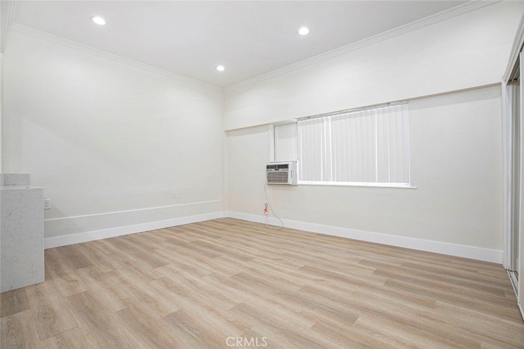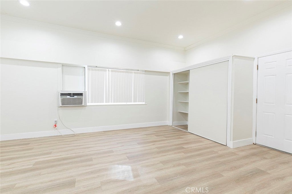 Welcome to this beautifully updated studio located in a great neighborhood in Van Nuys! This studio is conveniently close to restaurants, shopping, and entertainment! Located on the first floor, this home is freshly painted with recessed lighting and laminate floors throughout! The spacious living area features a window bringing in fresh light, with an open concept floor plan, a closet with built in shelves, and connects to the roomy kitchen! Newly remodeled kitchen features a backsplash and ample cabinet space! Large full size bathroom is perfect for personalization! With community laundry in the building, and street parking only this unit has it all! 1 small pet is welcome!