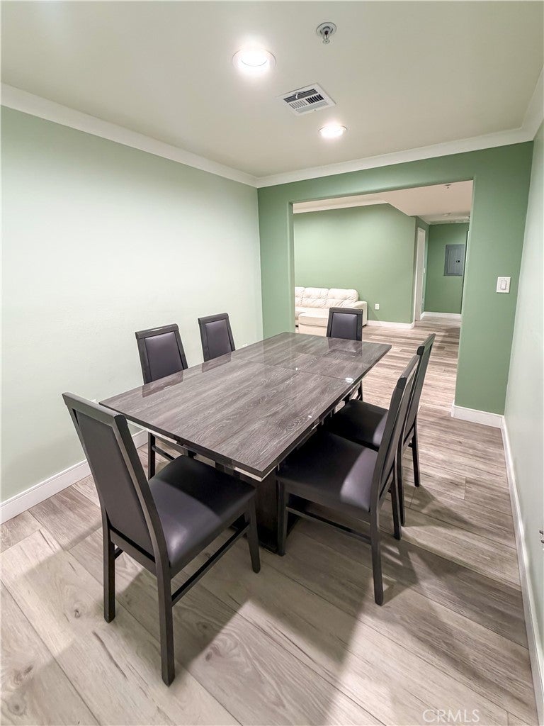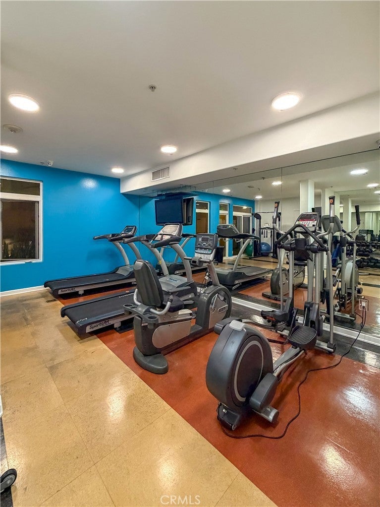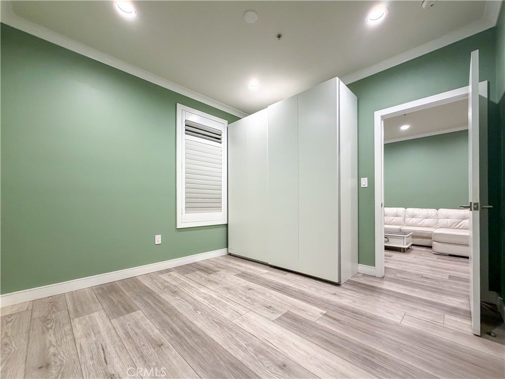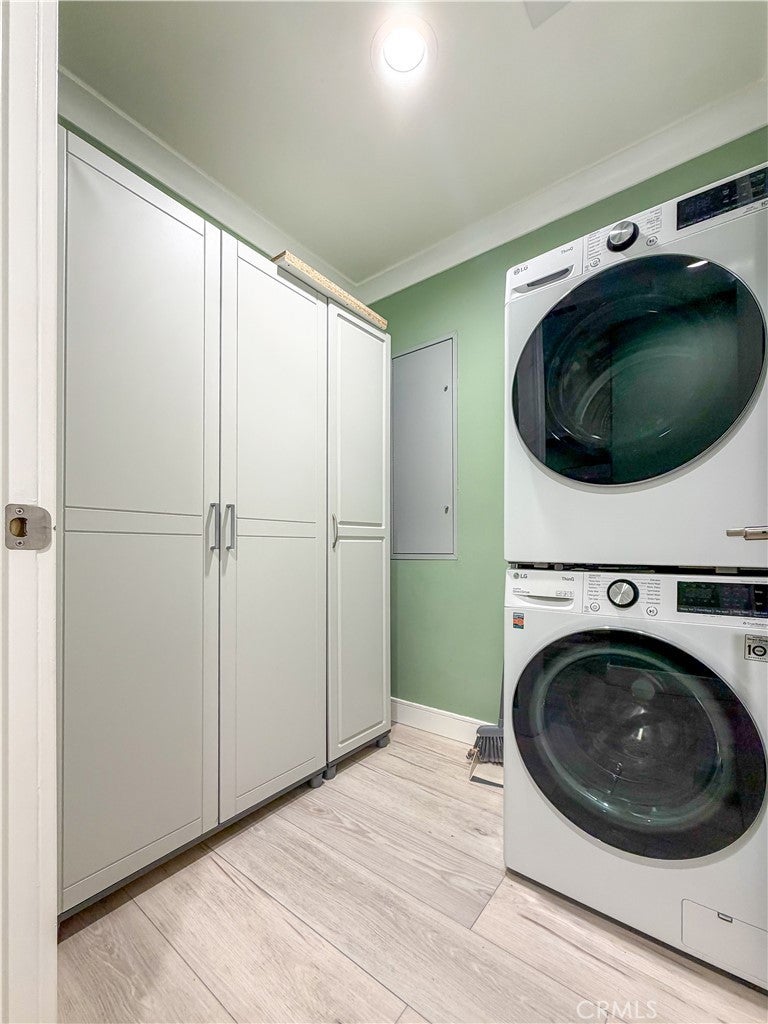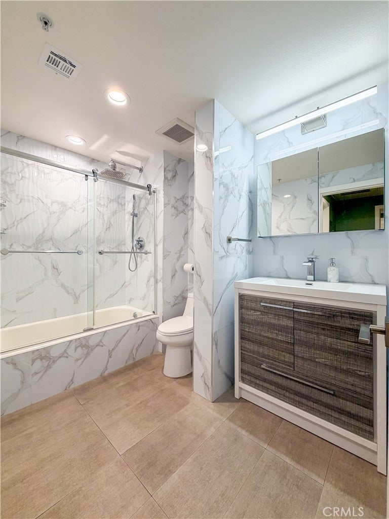 Experience sophisticated condominium living in the highly sought-after Burbank Collection, perfectly positioned in the heart of Downtown Burbank. Located directly across from AMC Theatres, this bright and modern 2-bedroom, 1-bathroom unit spans 920 square feet and features an excellent open-concept floor plan with fresh sage-green accent walls, light wood-look flooring, and recessed lighting. The gourmet kitchen showcases rich dark cabinetry and stainless-steel appliances including a gas range and oven that opens seamlessly to the living and dining areas. The spacious primary bedroom offers a peaceful retreat with excellent natural light while the updated bathroom features elegant marble-look tile, a glass-enclosed tub/shower combination, and a contemporary floating vanity. In-unit stacked washer and dryer add convenience. This pool-level unit offers direct patio access to the sparkling resort-style community pool and lush landscaping. Residents enjoy outstanding amenities including a fully equipped fitness center with cardio machines and weights, putting green, BBQ area, and convenient on-site package lockers. HOA dues cover water, gas, trash, sewer, and basic DirecTV service. This turnkey home includes two side-by-side assigned parking spaces in the gated subterranean garage plus extra storage. Located in a prime Burbank location, this rare opportunity will not last long. Schedule your private showing today!