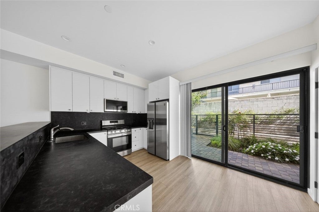 Welcome to this beautifully designed two-story townhome located in the desirable city of Burbank. This 2-bedroom, 2-bath residence offers a bright and airy layout with impressive high ceilings and floor-to-ceiling windows on the first level, filling the space with natural light. The open living area features wood-tone flooring and recessed lighting throughout, creating a warm and modern feel. The kitchen is equipped with stainless steel appliances and ample cabinetry, perfect for everyday living and entertaining. Upstairs, the spacious primary bedroom includes a walk-in closet and a well-appointed bathroom with a shower. The second bedroom is generously sized and ideal for guests, a home office, or additional living space. Additional highlights include two dedicated carport spaces and a thoughtfully designed layout that maximizes comfort and functionality. Conveniently located near shopping, dining, and entertainment, this townhome offers the perfect blend of style and location.