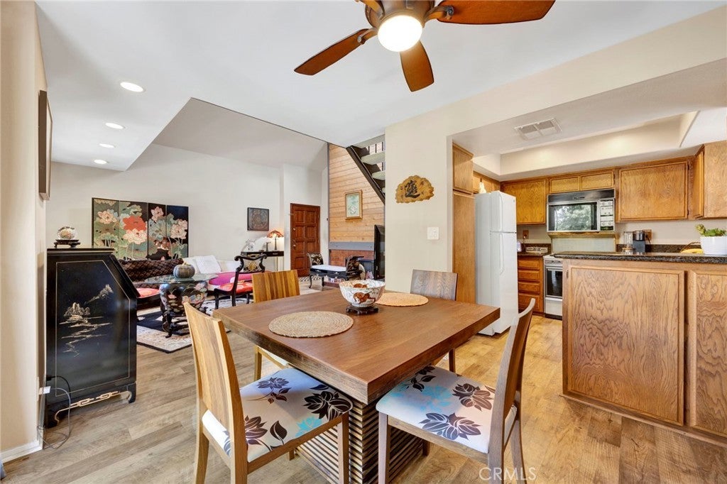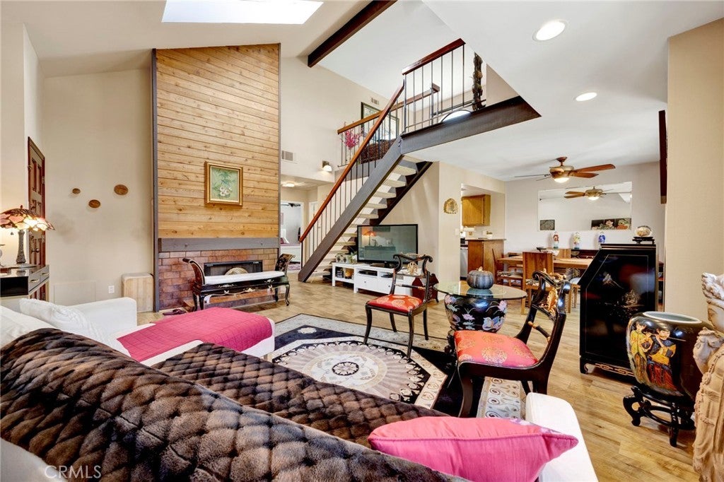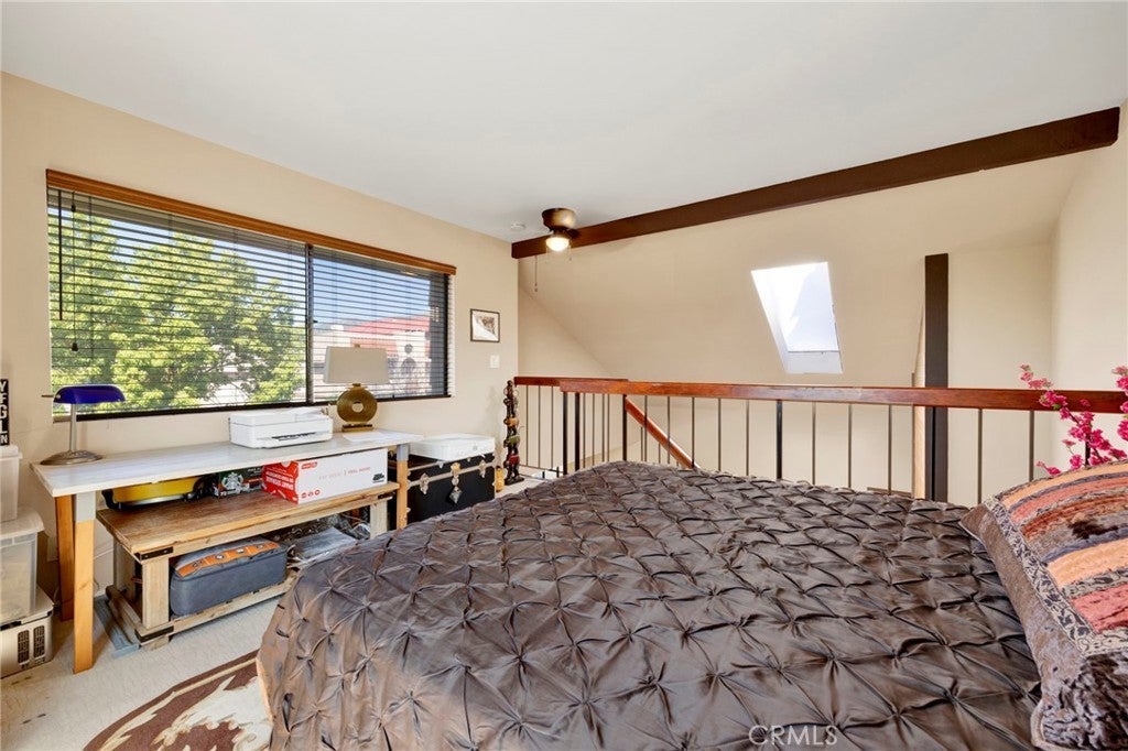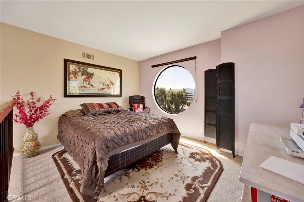 A refined blend of volume, light, and architectural character, this two-bedroom, two-bath residence is defined by soaring vaulted ceilings and a dramatic lofted design that elevates the entire living experience. Natural light pours into the expansive living area, where clean lines and open space create an effortless sense of sophistication and scale. The community's late-century contemporary architecture shines with clean geometric lines and multi-level design. The main living space extends seamlessly to a private balcony, offering a tranquil outdoor retreat and enhancing the home’s airy indoor-outdoor flow. The kitchen is both functional and understated, featuring generous cabinetry, and a breakfast bar that integrates beautifully into the open-concept layout. This is the ideal space for modern living and entertaining! The primary suite provides a calm and comfortable escape, complete with its own en-suite bath and ample closet space, while the secondary bedroom is equally well-sized and versatile. Above, a gorgeous loft overlooks the living area, adding architectural depth and serving as a striking flex space, perfect for a curated home office, studio, or elevated lounge. Thoughtfully designed with an emphasis on space, light, and flow, this residence offers a rare combination of openness and refinement in one of Burbank’s most desirable and centrally located neighborhoods and is an excellent opportunity to own in a centrally located Burbank neighborhood with proximity to major studios and employment hubs.