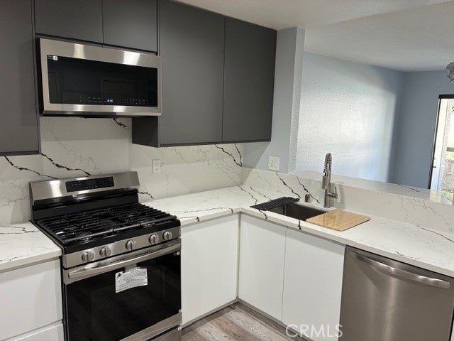 You must see this beautifully and totally remodeled everything with very expensive items including, all appliances, kitchen cabinets and Counter tops, All bathrooms, Flooring. located in the end unit and one of the largest unit in the complex ( 1710 Sq Ft ). Community Pool, SPA, Barbeque area. Close to all, Topanga Mall, Warner Center, Restaurants, FWYS and many more.