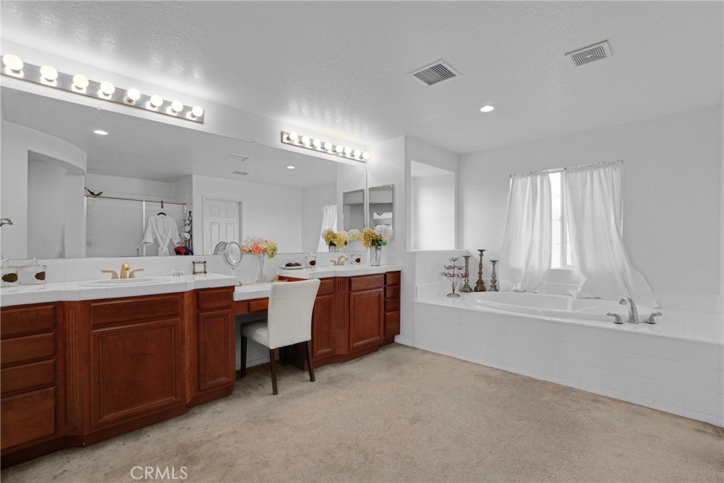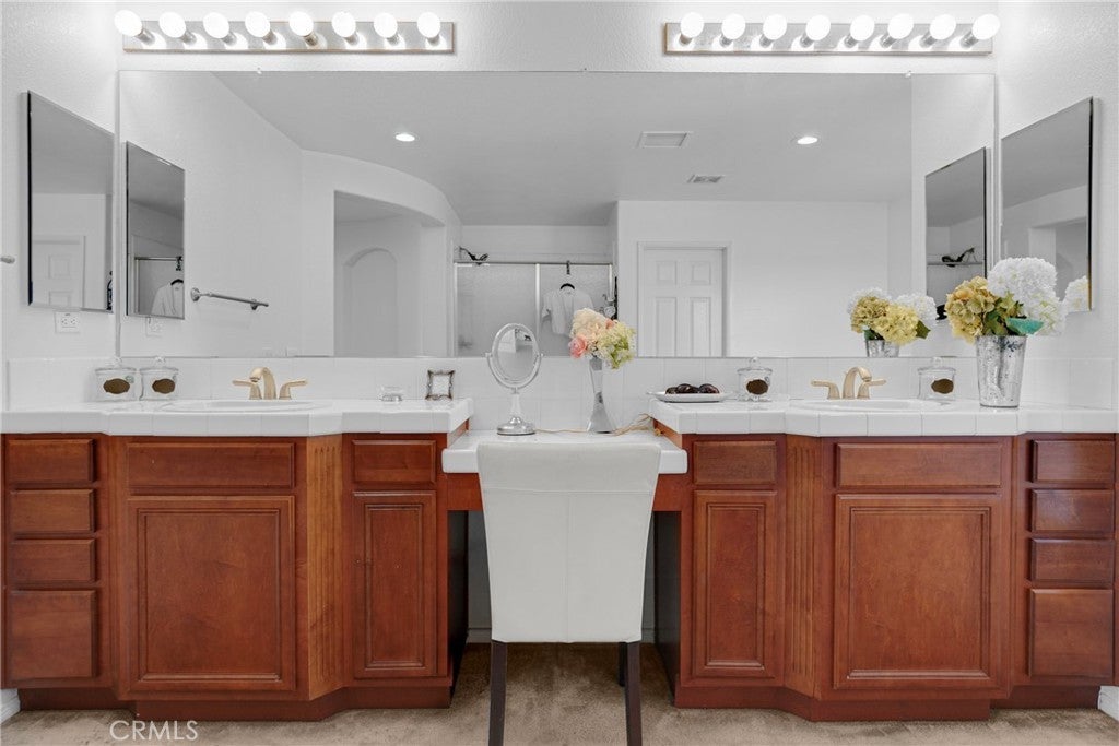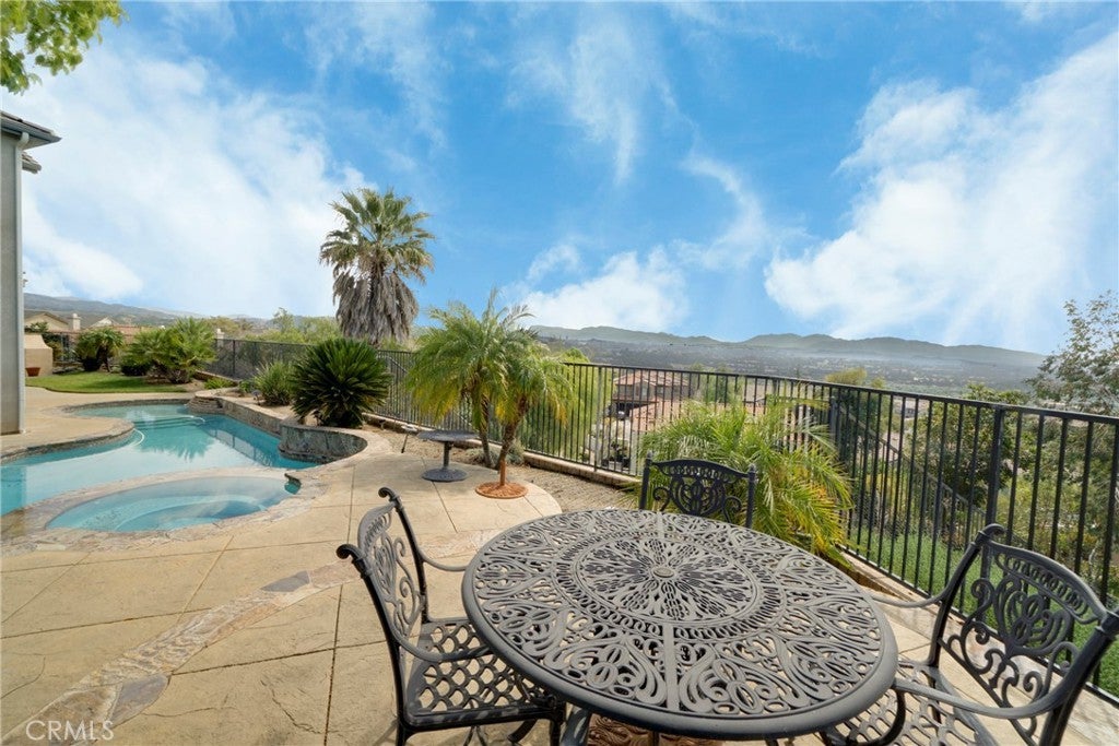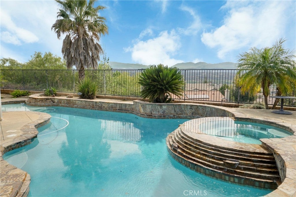 Welcome to this stunning pool home with a view, featuring 4 bedrooms and 3 bathrooms, located on a cul-de-sac in the Tesoro community of Santa Clarita. Thoughtfully designed with both comfort and functionality in mind, this residence includes a spacious loft and a downstairs bedroom with a full bathroom—perfect for guests, a home office, or an in-law suite. The bright and open floor plan is filled with natural light, creating a warm and inviting atmosphere throughout. The beautifully appointed kitchen features stainless steel appliances, a large pantry, and ample cabinetry for storage. Just off the kitchen, you’ll find a stylish wet bar complete with a sink and wine fridge—perfect for entertaining. The dining area is light and airy, seamlessly flowing to the backyard for effortless indoor-outdoor living. The primary suite offers a relaxing retreat with a walk-in closet and a luxurious en-suite bathroom, complete with dual sinks, a vanity area, a separate shower, and a soaking tub. A dedicated laundry room located upstairs includes a sink for added convenience. Step outside to an exceptional backyard designed for both entertaining and unwinding. Enjoy breathtaking views while relaxing in the pool and spa, or host gatherings around the built-in BBQ, fireplace, and island-style countertop seating. This outdoor space truly embodies the ultimate private oasis. Residents of the Tesoro community enjoy access to resort-style amenities, including pools, a spa, and multiple parks. The recreation center further enhances the lifestyle with a clubhouse, lake, fitness center, baseball and basketball courts, volleyball, and scenic trails.