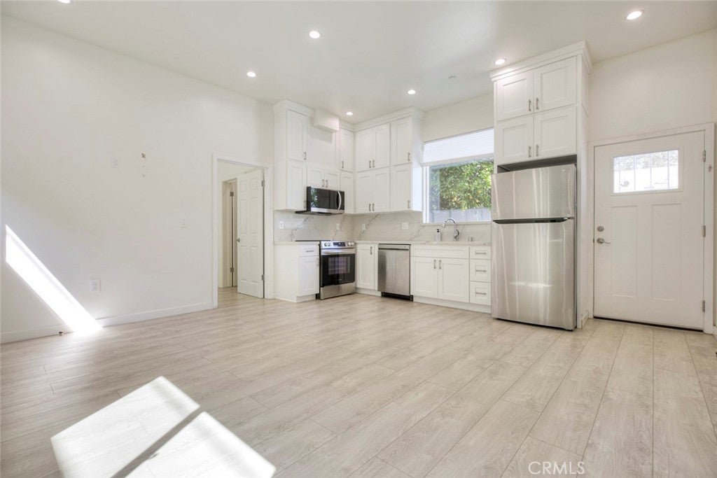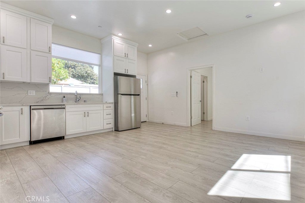 Beautiful 2-bedroom, 2-bath single-level ADU featuring an open-concept layout with sleek quartz countertops and stainless steel appliances. Enjoy laminate flooring, recessed lighting, and individual temperature control in each room for maximum comfort. This home includes a private outdoor seating area, in-unit laundry, spacious closets, and modern stand-up showers. One dedicated parking space is included, along with solar energy to help reduce electricity costs.