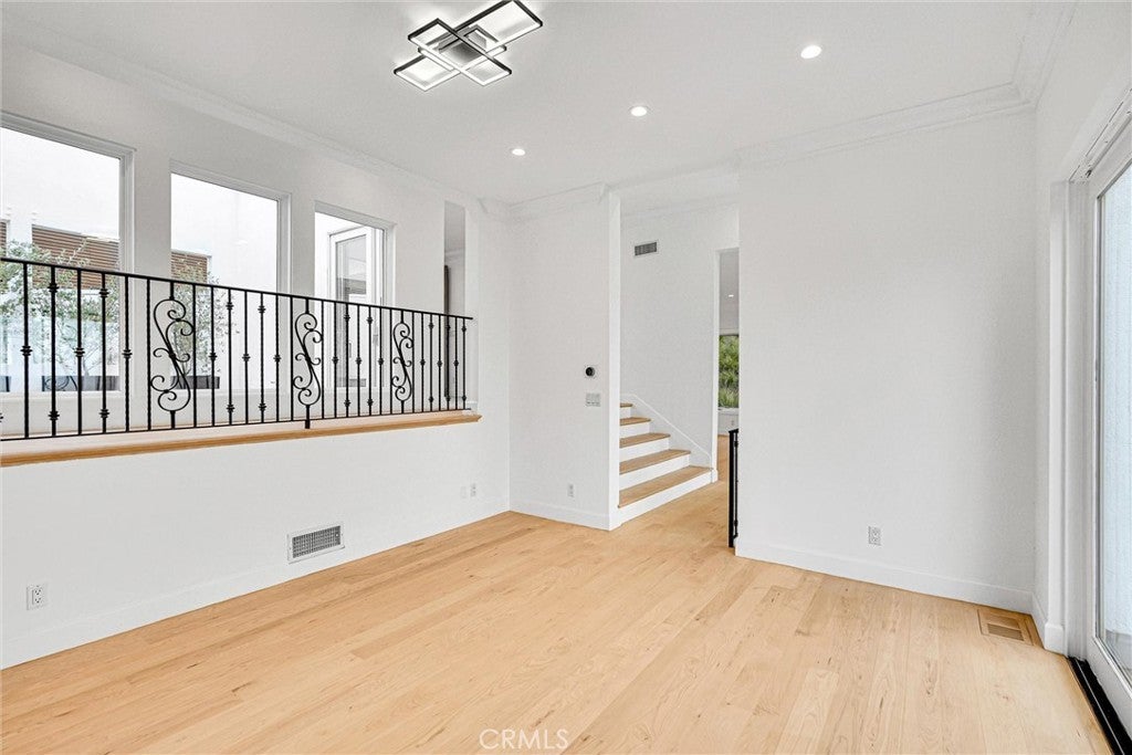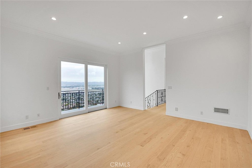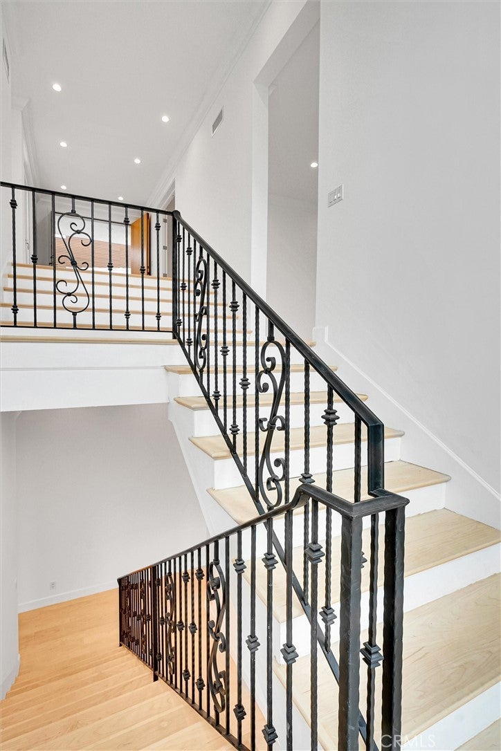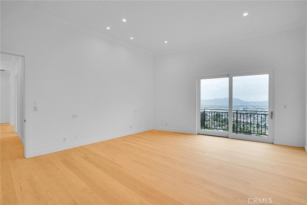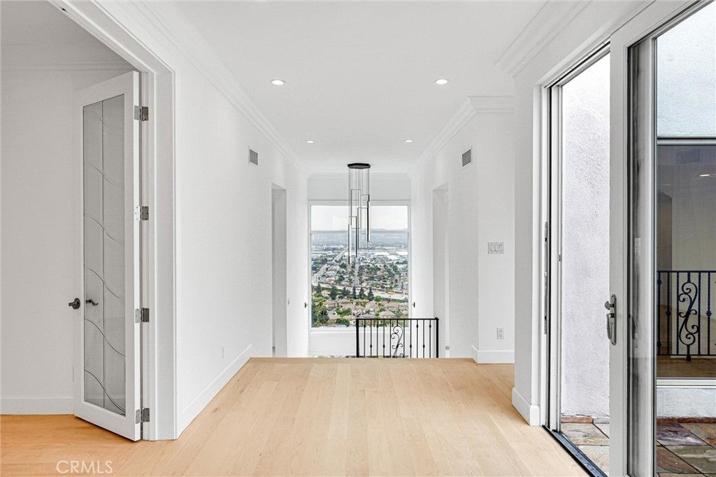 Balcony, Crown Molding, Recessed Lighting, Primary Suite, Walk-In Closet(s)