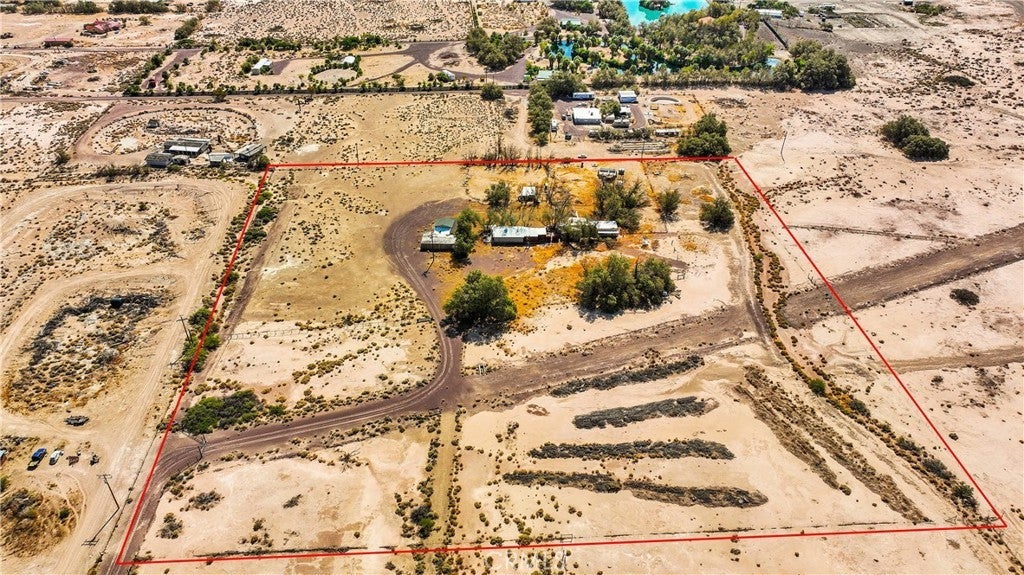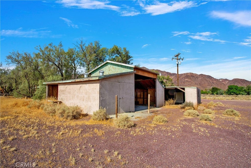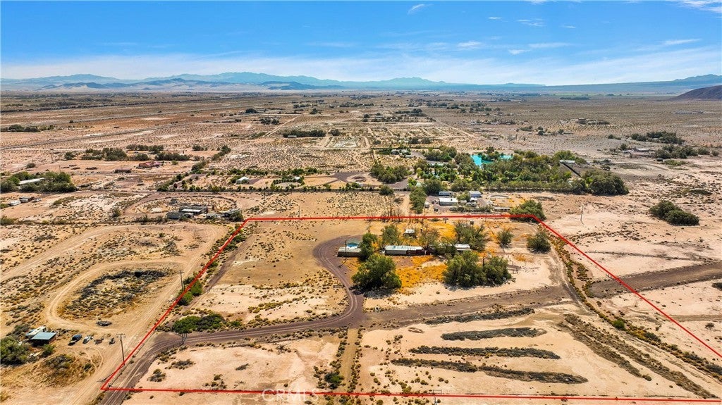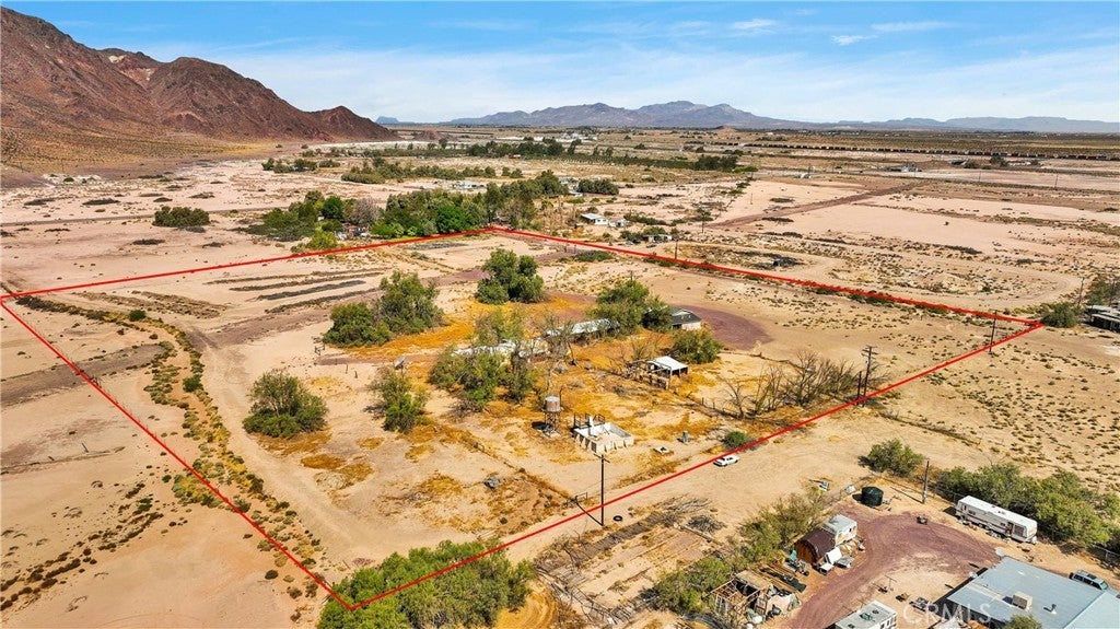 Start your own ranch by the Newberry Mountains as golden eagles soar overhead. This ranch property sits on 10 acres, located off a secure private road with it's own well. Built in 1940, the 1,166 SqFt home features classic architectural cues from the early days of desert living including thick wooden doors, iron-accented windows, a centerpiece brick-inlaid wood-burning stove and vintage appliances. If you know anything about ranches, you know it ain't all about the living quarters. There is over 5,000 SqFt of outbuildings on this property, including garages, workshops, washrooms, vehicle storage, a tack room, large cinder block garage and more! Horses are already welcome with two shelters on site and more. There is a pond behind the home made of volcanic red rock, perfect for ducks, chickens or even koi fish. A retro concrete swimming pool with waterslide and deck is included in the sale. This is the perfect starter ranch, or the ideal site for an off-road enthusiast looking to build a motocross track and have easy access to the open desert for their sand toys. This property has an amazing view of the Newberry Mountains, home to a large population of desert bighorn sheep. The full 10 acres is a combo of two parcels, APN 0528-081-61 and 0528-081-62.