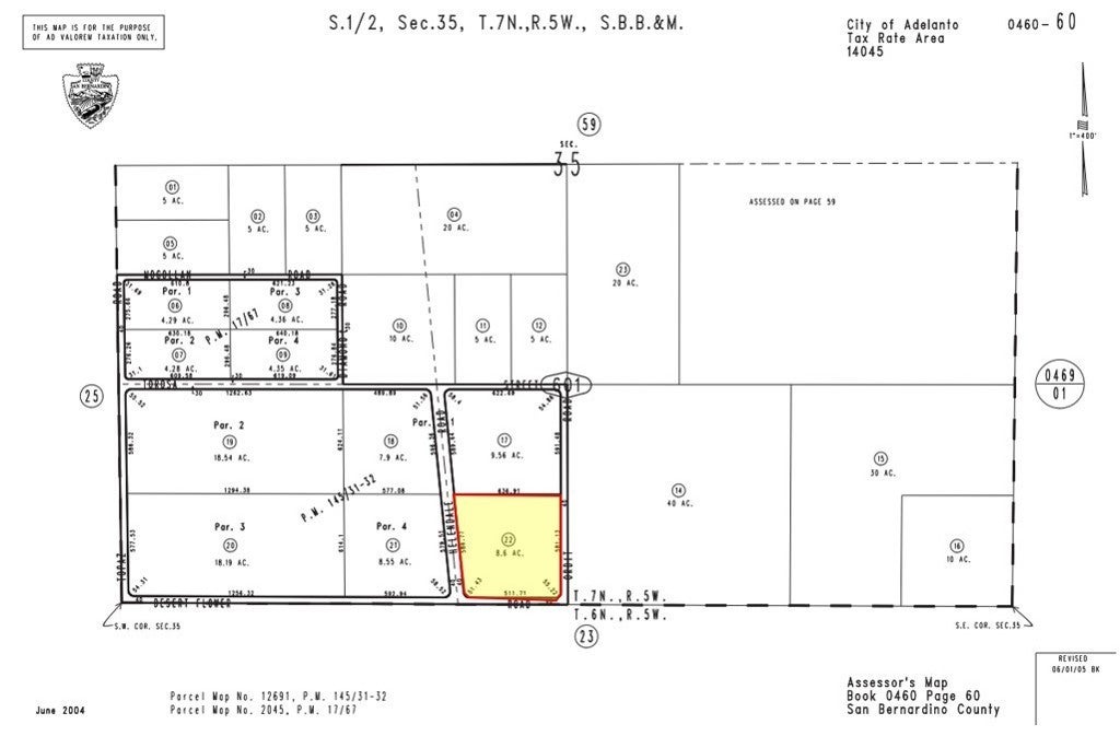 ±8.6 acres of unimproved residential land at the corner of Desert Flower and Helendale Rd in Adelanto; APN: 0460-601-22. Zoned Desert Living (DL-9) this lot permits for the development of 1 dwelling unit per 9 acres. This location is also within a Qualified Opportunity Zone and eligible for potential tax benefits. This site abuts the Southern California Logistics Airport. The Airport recently completed approximately 4MM square ft of expansion and is now home to major global leaders of industry such as Amazon, Boeing, GE Aviation, Kuerig Dr. Pepper, M&M/Mars, Newell Rubbermaid, and more. As an extension of the Inland Empire, the High Desert continues to grow with millions of square feet of planned industrial and tens of thousands of housing units under construction. Buyer to verify all information contained herein. Agent and their representatives are not responsible for the accuracy of these claims.