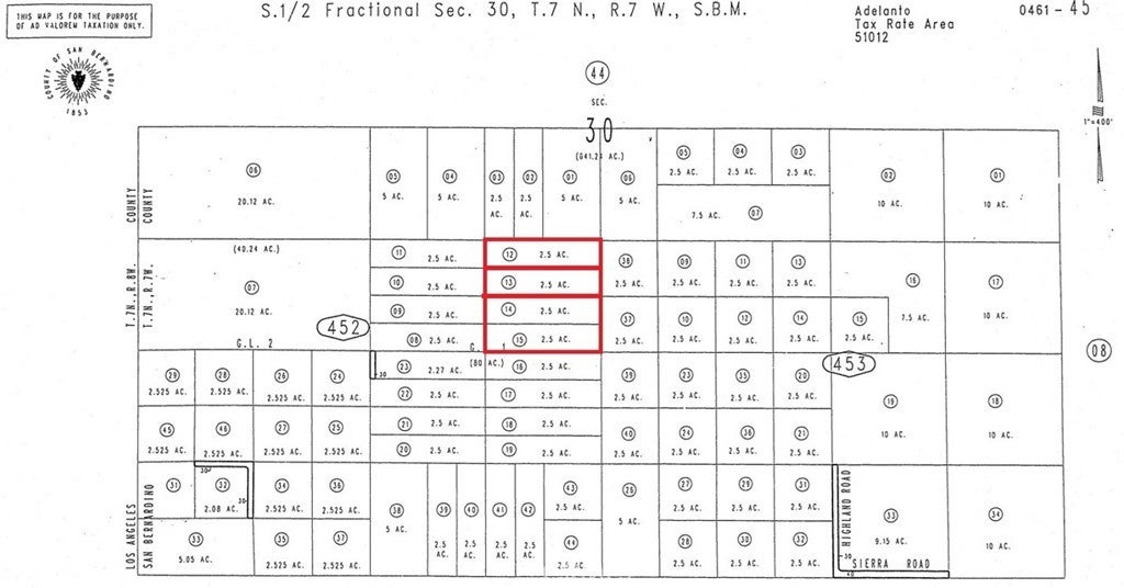4 SEPARATE 2.5 ACRE LANDS, TOTAL OF 10 ACRES!! This land has already been subdivided with 4 separate parcels numbers: 0461-452-12, 13, 14, and 15. Motivated seller including all these 4 parcels for sale in 1 transaction. Located in El Mirage and Adelanto area near infamous El Mirage Dry Lake Bed. Excellent land to invest now then sell them separate and make money!! Opportunity knocking! Hurry to submit an offer today!!