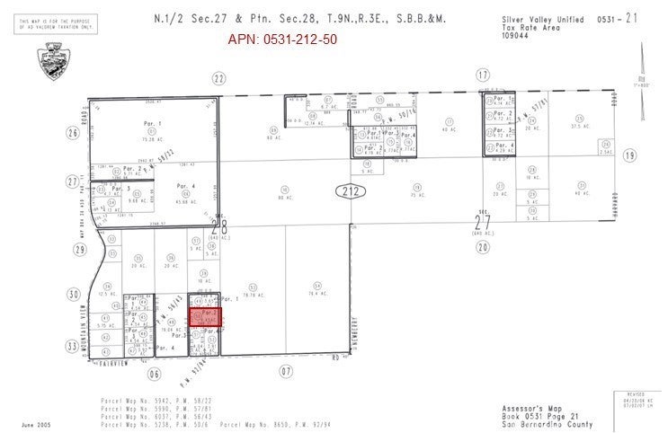 One of 4 adjacent parcels for sale, 4.45 Acres ( APN: 0531-212-50) GPS: 34.83871, -116.67273 This wonderful 4 Acres sits along Harvard Rd in Newberry Springs, CA. Newberry Springs is a quaint desert community located in San Bernardino County, California between Interstate 15 and Highway 40 to the east of Barstow, CA. This property lies within the unincorporated area of the San Bernardino County within the 'Rural Living' zoning. This Rural Living zone can be subdivided into 5 acre parcels. Rural Living allows for Single Family homes, Manufactured homes, accessory crop production, produce stand and agritourism enterprises, animal keeping, livestock operations, school, place of worship, park or playground, Bed & Breakfast and small residential care facilities. Overhead electricity is available along Fairview Rd. Residents in the area have private water wells for their water needs, septic tanks for their sewer needs and propane tanks for their gas needs. Adjacent parcels are also for sale, a total of 16 acres is available. Newberry Springs is known for its serene and picturesque landscapes, it offers a peaceful escape from the bustling city life. The area is famous for the mesmerizing views of the Mojave Desert, showcasing stunning sunsets and starry nights that attract stargazers and nature enthusiasts alike. With its unique blend of rustic charm and natural beauty, Newberry Springs offers a tranquil retreat for those seeking a genuine desert experience. This property does not yet have an address, the address listed is for marketing purposes only. While the boundary lines on the map offer a glimpse, they are only approximate. A Buyer should verify boundaries, zoning and utilities, ensuring every aspect aligns with their vision for the property. GPS: 34.83871, -116.67273