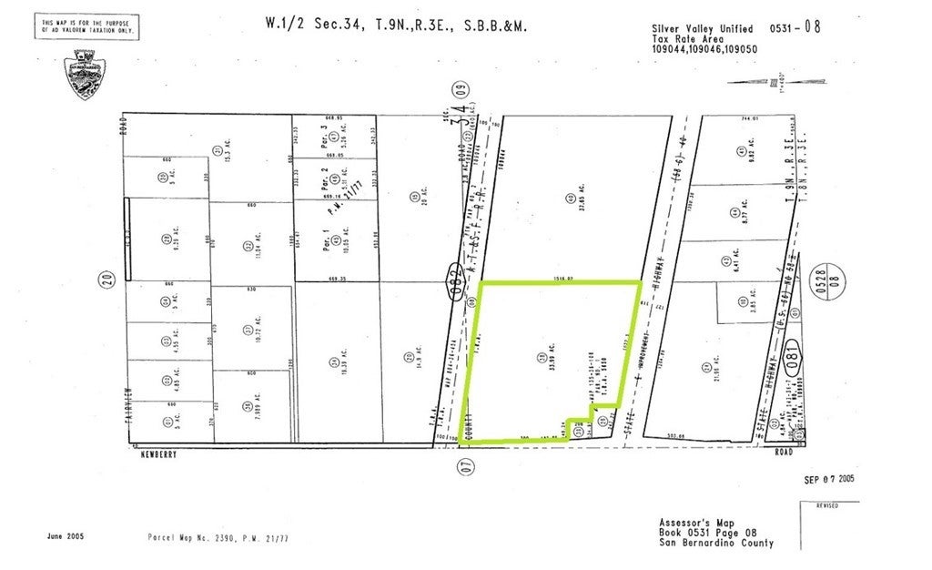***Come VIEW and MAKE an OFFER TODAY! Affordable COMMERCIAL LAND OPPORTUNITY located in expanding Newberry Springs CA. The 33.99 ACRE PARCEL is zoned CG-SCp (General Commercial - Sign Control Primary) which allows for many different commercial/renewable energy uses including the possibility of installing billboard signage along the southern boundary which runs adjacent to VERY HIGH TRAFFIC Interstate-40. In addition to frontage along the interstate, the nearly 1.5M square-foot lot has approximately 800 feet of paved access frontage along Newberry Rd, and approximately 1300 feet of RAILROAD frontage along the northern boundary which could be suitable for a shipping RAIL SPUR. Not to mention, the site is only a few blocks away from the Interstate 40/Newberry Rd exit and is about 15 miles away from the Interstate 15/Hwy 58 interchanges offering excellent access to pretty much all of Southern CA. Plus the property is adjacent to utility lines. With huge companies like PG&E, BNSF, and the US Military expanding their activities nearby, this property is ideal for any savvy real estate investor or anyone looking to grow their business in order to accommodate the influx of logistical operations coming to the area. A definite MUST SEE OPPORTUNITY worthy of serious consideration before it's too late! ***