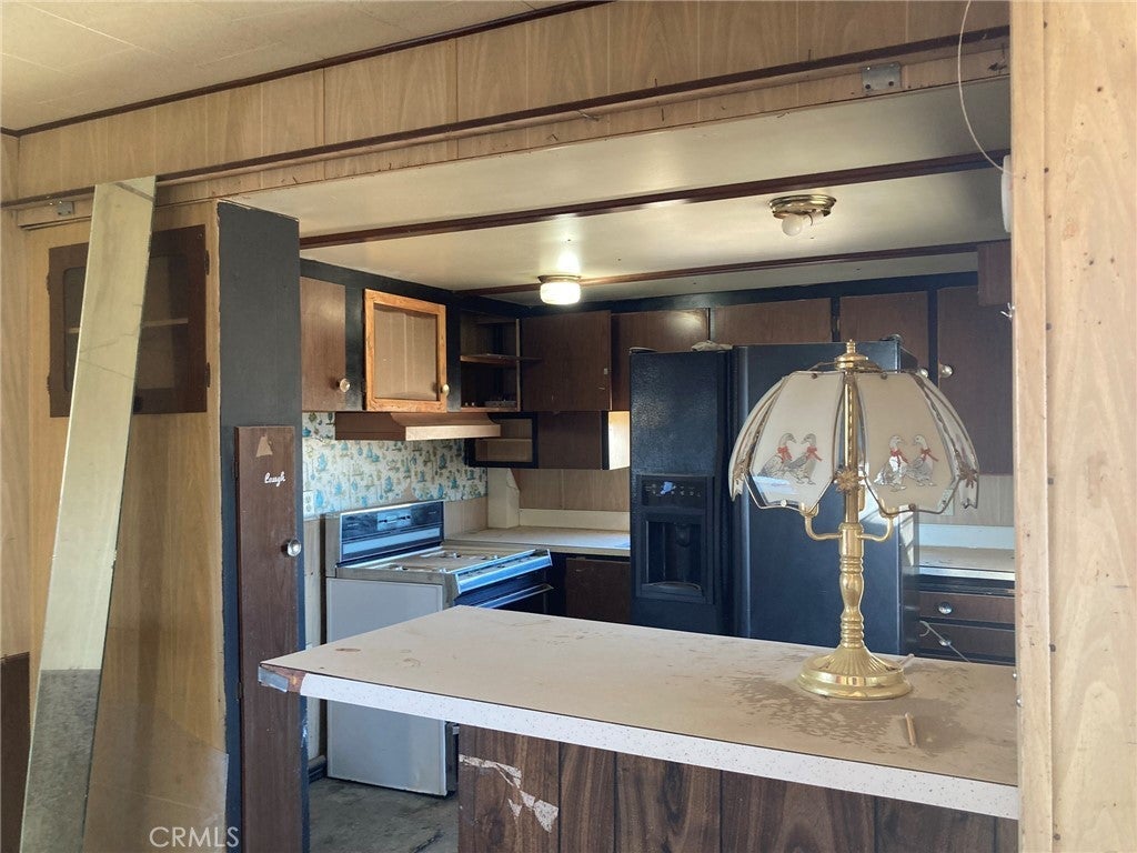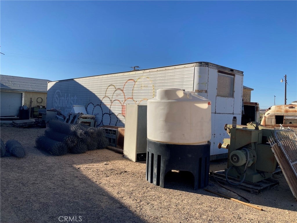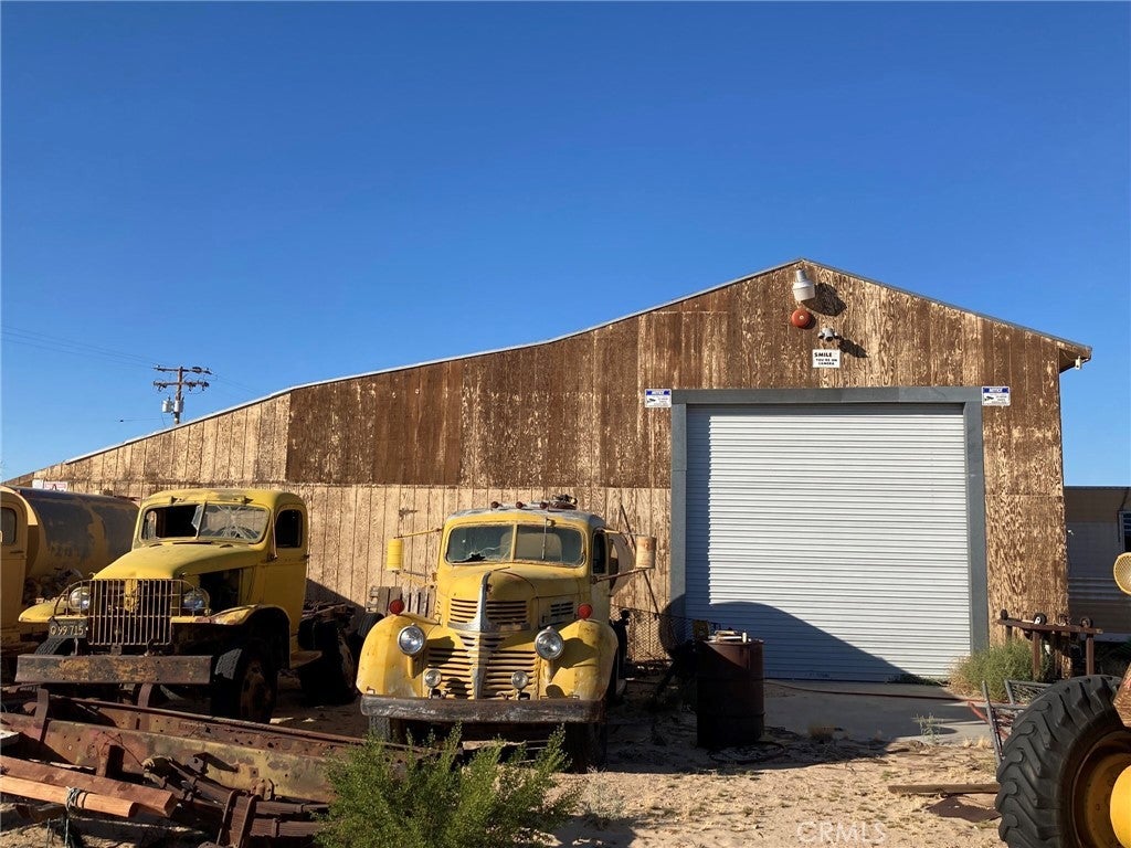 This property is a Mechanic's dream. It has a HUGE machine shop/mechanics shop with 220 three phase power, 3 roll up high clearance garage doors, 4 overhead chain fall electric hoists in area with high ceilings & room to park at least 3 cars. The whole shop has been plumbed for air tools. Nice neighborhood, centrally located in Newberry Springs but more towards the west side so closer to Barstow than some of the properties. A 45 foot storage container will stay with the property but Seller will be taking the 14 foot container. The lot is fully fenced and is on the NE Corner of & Coventry. There is an older single wide 2 bdrm 1 bath mobile home on the property, it's not on a permanent foundation and is considered "personal property". Seller doesn't have title to the mobile home. It needs a lot of work but has a new service panel in the bedroom. A new well, 320' deep with 5' casing was installed in December 2021 but never used. Water level was at approximately 175'. Pump, pressure tank, drop pipe & wire still need to be installed. There is also an old well on the property but probably not salvageable. Large pressure tank is for the old well & is in the tall shed to the left of the driveway. This property is being sold in existing condition. There are security cameras & a caretaker, drive by only or make appointment to show. DIRECTIONS: From Barstow take 1-15 to East to Minneola Rd exit. Turn right, go 2.5 miles to Valley Center Rd, turn left. Go 2 miles to Condor Rd, turn left. Go 6 blocks to just past Coventry Street, the property is fenced & will be on your right. Located on the NE corner of Condor & Coventry. Enter from Condor Rd.