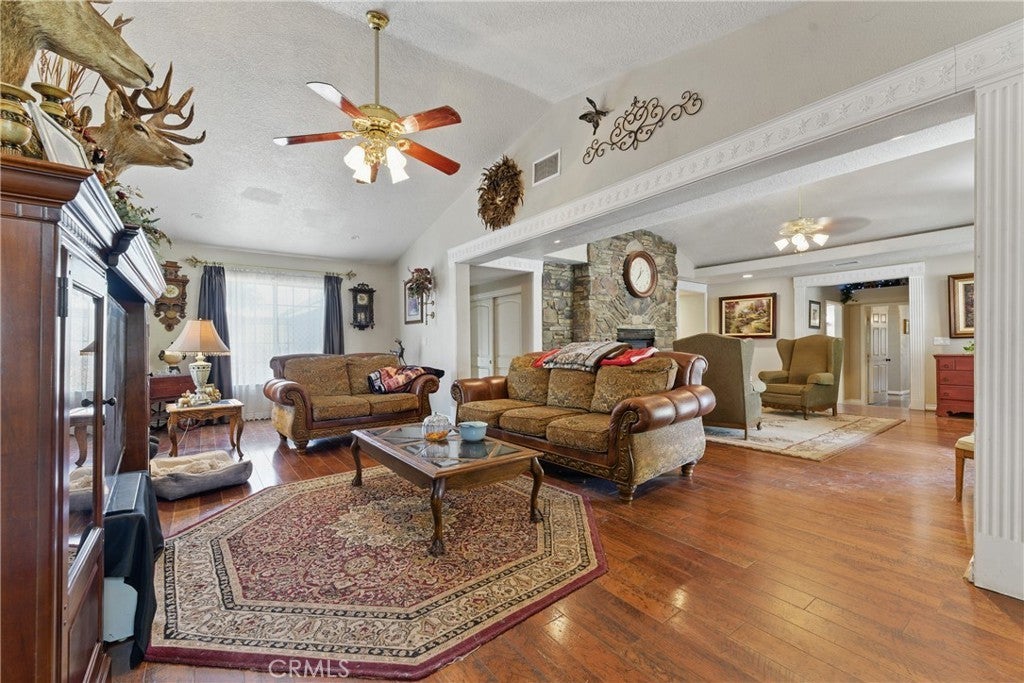 FAMILY COMPLEX!! Main house with 5 separate ADU’s!! Private Lake with Island & rock waterfall, Movie Theater Complex, and much more!! An excellent property for a very large family! Could be also great property to do Airbnb, Bed & Breakfast, or any Home-Based Businesses. Very large main home with 4 bedrooms, 3 bathrooms, 5,012 Square Feet of spacious living space. Grand entryway into the foyer and huge real rock grand fireplace. Open concept with a split floor plan. The south wing of the home includes the living room, beautiful kitchen with ample cabinet space and granite countertops, the kitchen opens up into the oversized dining room with a 2nd fireplace, 2 other bedrooms and 2 full bathrooms. The north wing offers oversized laundry room/office which could be utilized as a bedroom, and the 3rd bathroom has a bathtub. The large Primary suite includes a beautiful bathroom with walk-in shower, soaking tub, his/her vanity sink with granite counter tops. The 3rd fireplace is located master suite’s bedroom. A HUGE 1200 Square feet Hall Room with pellet stove, which is great for meetings, large gatherings and entertaining. Inground POOL! Backyard has a gorgeous huge pond stocked Koi fish and Catfish, surrounded by a well maintained lawn, mature trees, back porches and carports. ADU 1 bedroom and 1.5 bathroom. ADU 2, 3, 4, & 5 has 1 bedroom and 1 bath each. Large 4.24 acre of land is completely fenced with block wall and larger wrought iron gates!! A 1 OF A KIND PROPERTY RARE PROPERTY!! Must come to see the entire complex to truly understand the possibilities!!