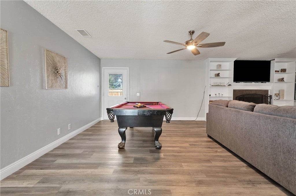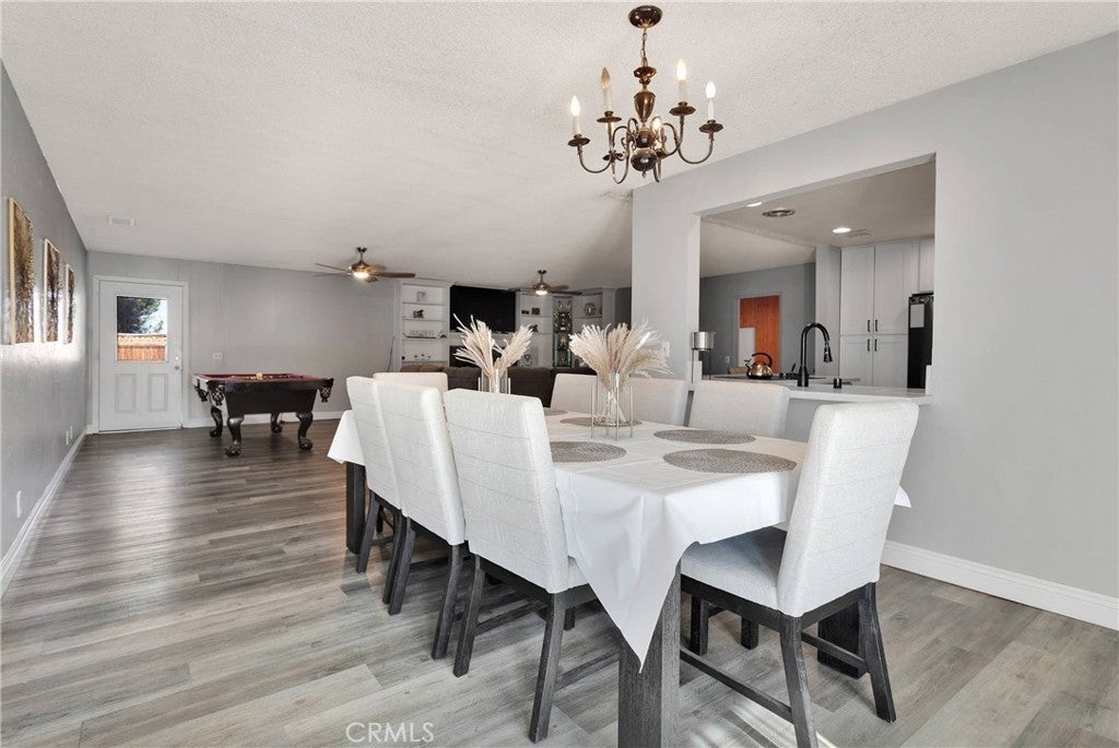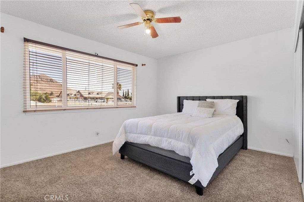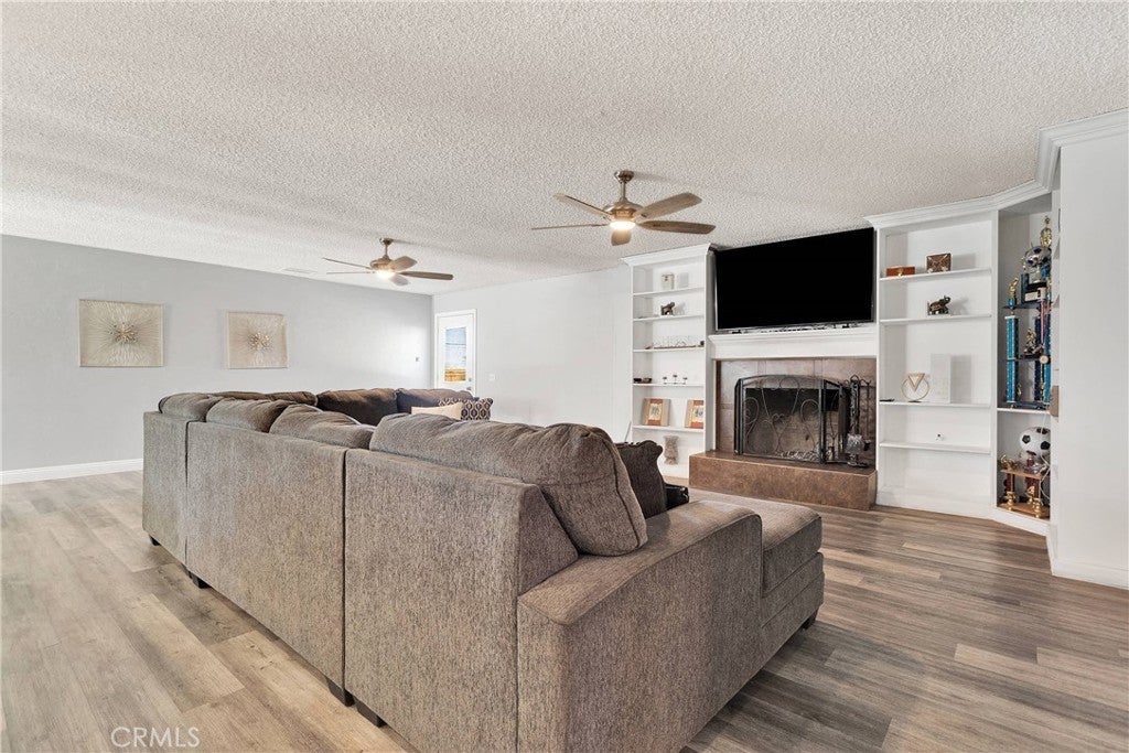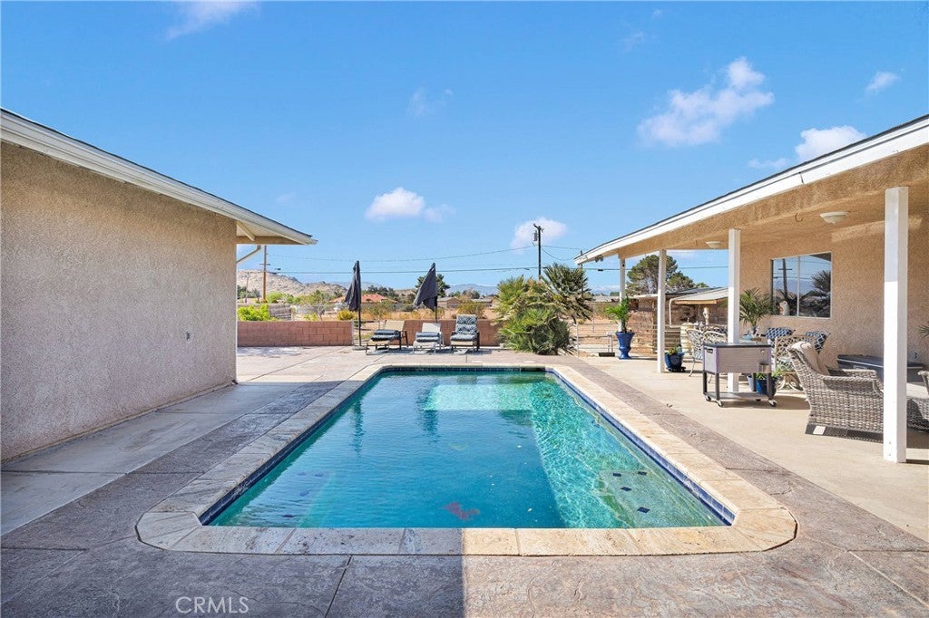 Welcome to this beautifully upgraded 5-bedroom, 3-bathroom single-story home, a perfect blend of modern design and everyday comfort. Step inside to find upgraded flooring throughout, a cozy fireplace. The kitchen is a chef's dream, featuring quartz countertops, pizza oven, stainless steel fridge, and a spacious area to entertain. The Primary bedroom adds a touch of character with added office space, along with two walk-in closets. Additionally, the fifth bedroom may be used as an in-laws quarters located near the living area. Enjoy the outdoor living in the backyard oasis-complete with a sparkling pool and some mountain views. Additional highlights include recently repainted exterior, updated windows, also newer roof. This move-in ready home truly has it all!