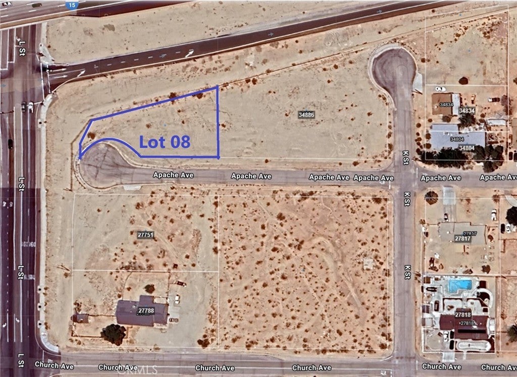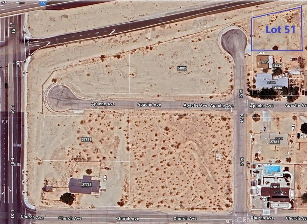 3 lots side by side totaling 1.93 acres. The first lot, 08, is at the end of Apache Ave a cul-de-sac the middle lot , 07, has the address 34886 K St, it is on the corner of Apache and K St, the last lot , 51 , is at the end of the K St cul-de-sac. All three lots are being sold together. They are all flat and ready for you to bring your imagination. There are two other parcels for sale on Apace Ave.