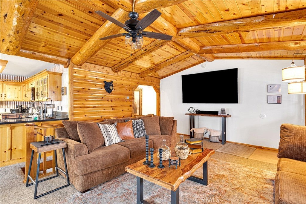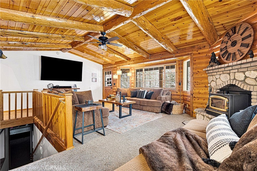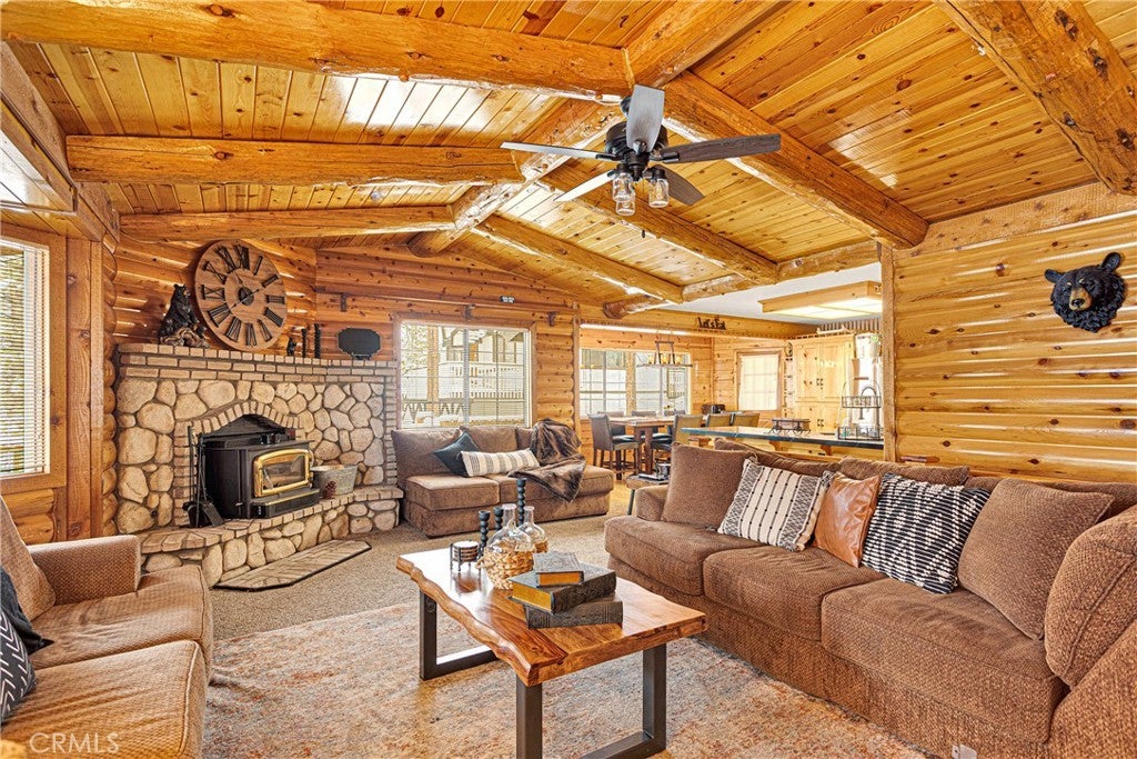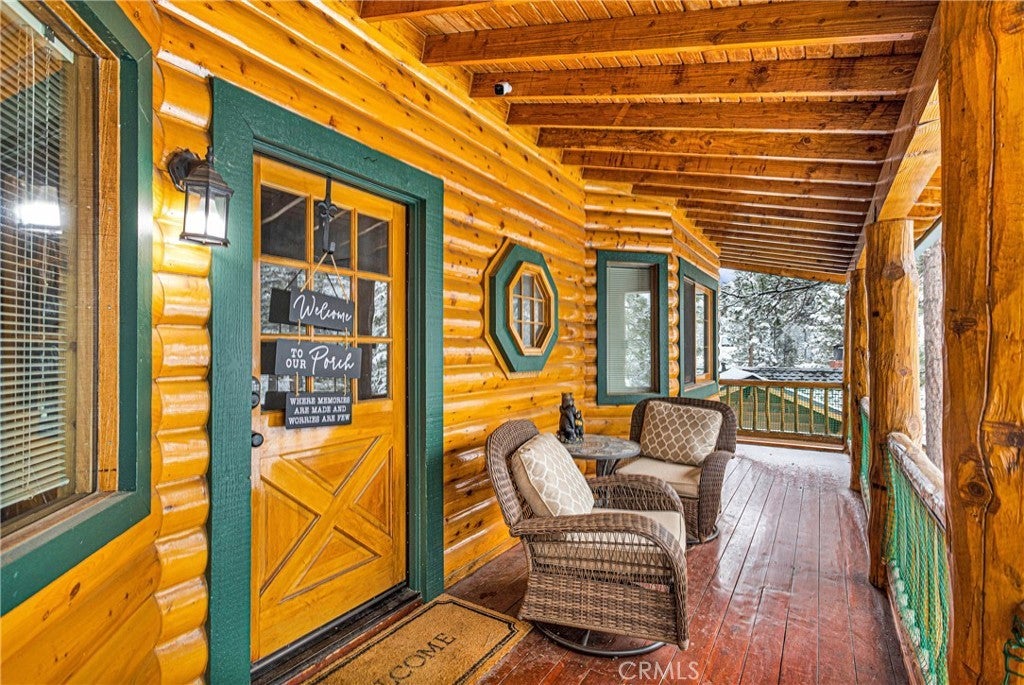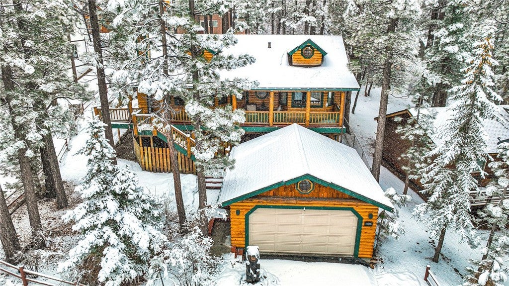 The epitome of rustic, homey, and relaxing is this idyllic cabin in Big Bear! With all over wood detailing inside and out, this 1,944 sq.ft. retreat with attached 2-car garage is mountain living at its finest with a large wrap around deck, wood beamed ceilings, plush carpeting, and picturesque views of the surround forest. Enjoy a roaring fire in the living rooms beautifully crafted stone/brick fireplace or a sumptuous dinner in the spacious dining room with neighborhood views. This darling kitchen has wood cabinets with display windows, neat granite countertops, and built-in appliances. All bedrooms include built-in closets and plush carpeting while the primary bedroom includes an en-suite bath. This quaint mountain home is located only minutes away from the center of town’s markets, local shops, restaurants, and the glorious lake! Enjoy historic Big Bear today!