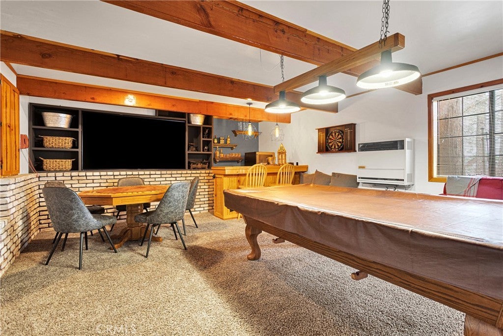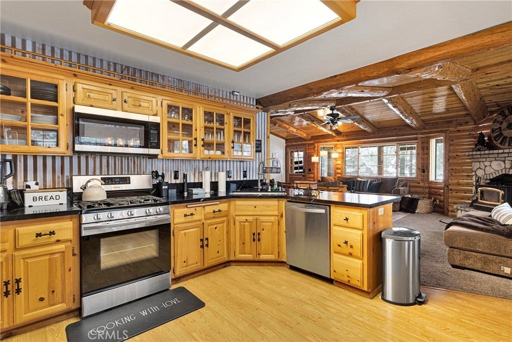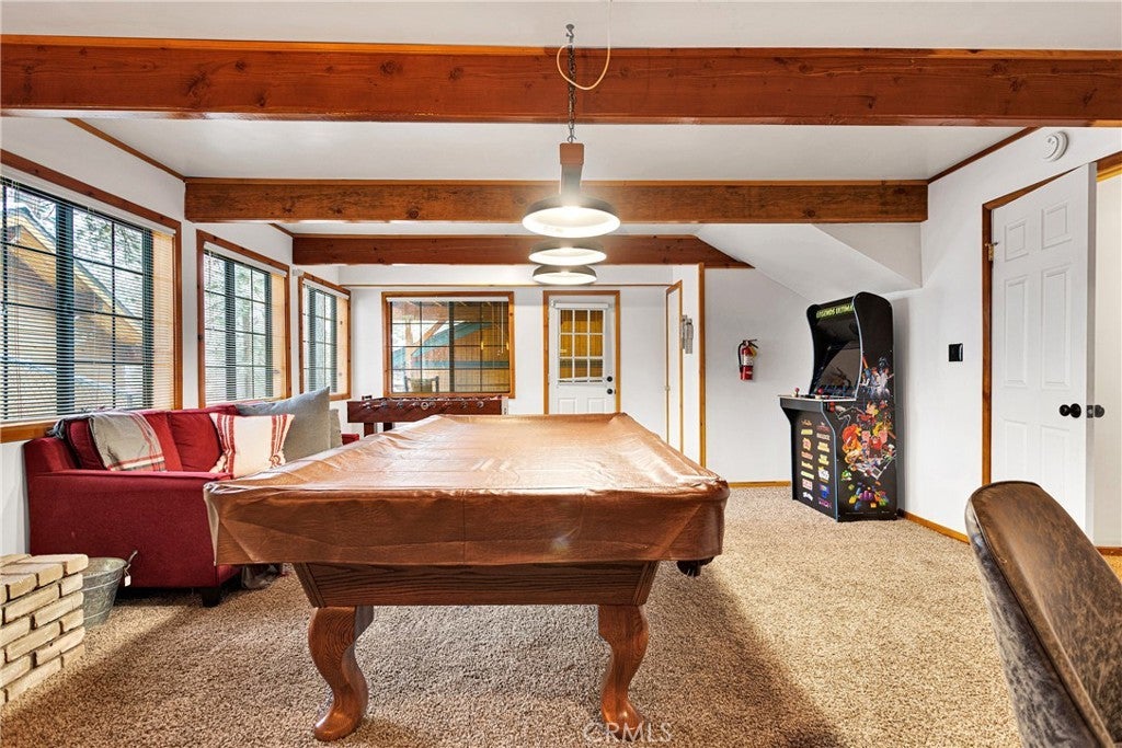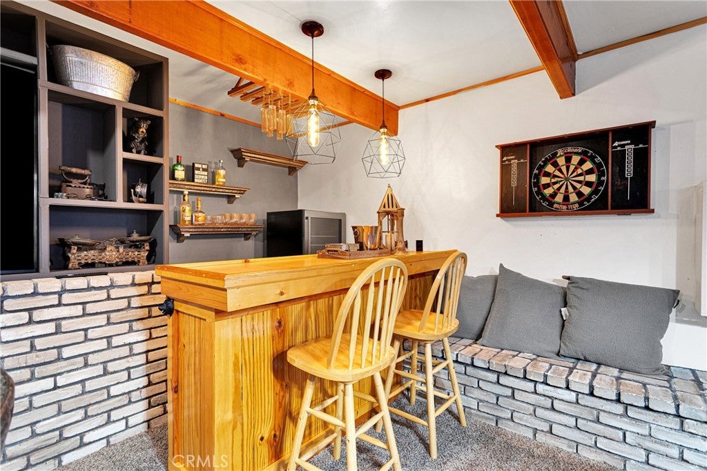 The epitome of rustic, homey, and relaxing is this idyllic cabin in Big Bear! With all over wood detailing inside and out, this 1,944 sq.ft. retreat with attached 2-car garage is mountain living at its finest with a large wrap around deck, wood beamed ceilings, plush carpeting, and picturesque views of the surround forest. Enjoy a roaring fire in the living rooms beautifully crafted stone/brick fireplace or a sumptuous dinner in the spacious dining room with neighborhood views. This darling kitchen has wood cabinets with display windows, neat granite countertops, and built-in appliances. All bedrooms include built-in closets and plush carpeting while the primary bedroom includes an en-suite bath. This quaint mountain home is located only minutes away from the center of town’s markets, local shops, restaurants, and the glorious lake! Enjoy historic Big Bear today!
