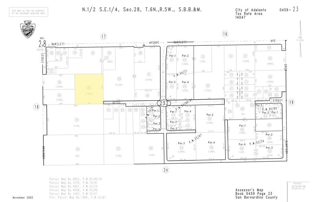 Presenting a 2.31-acre vacant parcel located in Adelanto's Business Park (BP) zoning district. This nearly square, level lot offers a versatile canvas for various development projects. Situated just north of Air Expressway between US-395 and the SCLA, the property benefits from its proximity to major transportation routes and established industrial hubs. Southern California Logistics Airport (SCLA), is a rapidly expanding industrial and cargo hub. Notable developments in the vicinity include a 1.3 million-square-foot Goodyear distribution center currently under construction. The area is also home to major tenants like Prologis and Stirling Development.