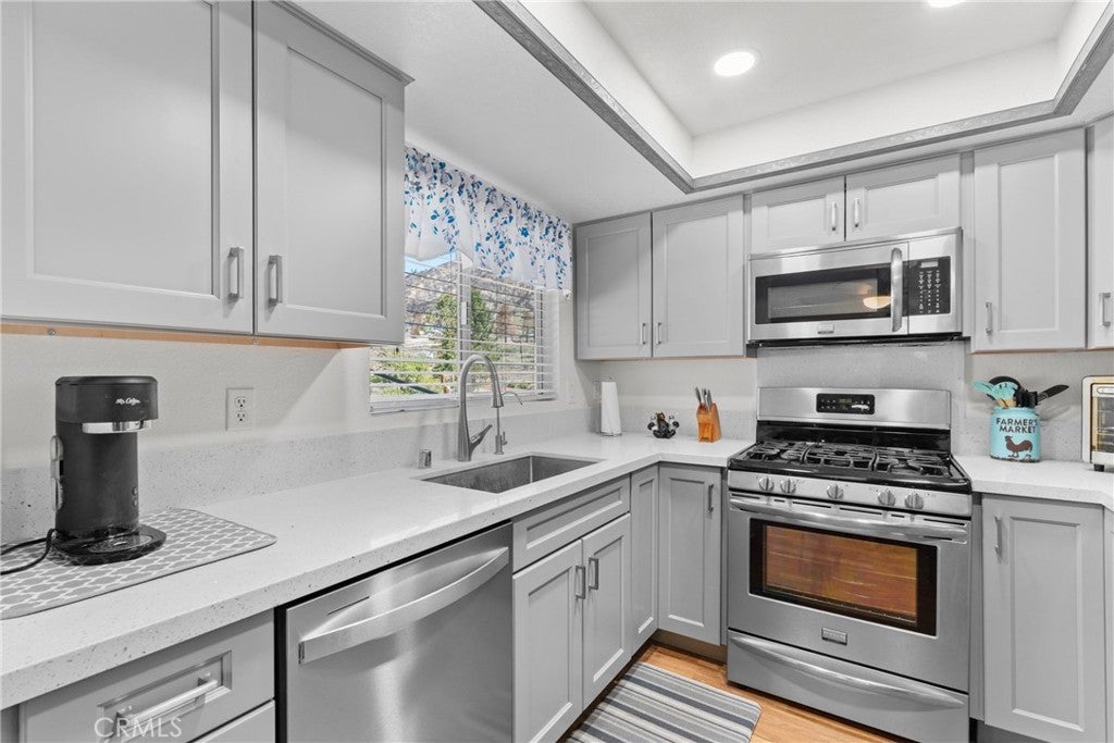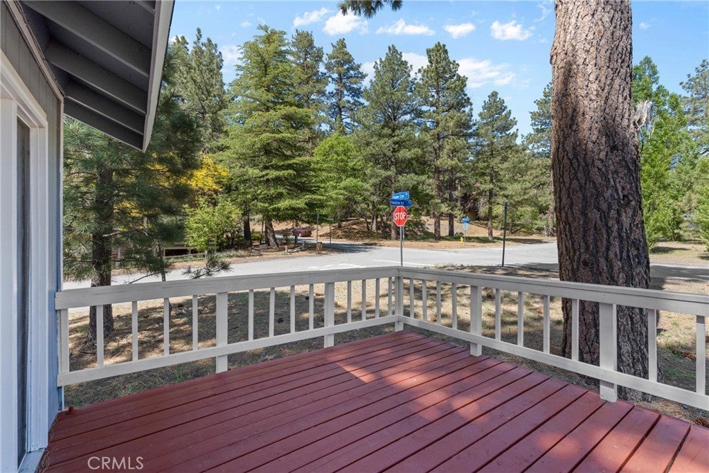 ***THE WEST SIDE IS THE BEST SIDE!! THIS 3 BEDROOM 2 BATHROOM PROPERTY WITH 2 CAR ATTACHED GARAGE CHECKS A LOT OF BOXES!! RV ACCESS, COVERED FRONT PORCH, CORNER LOT, REMODELED KITCHEN, STAINLESS STEEL APPLIANCES, NEW CARPET, AND JUST A HOP, SKIP AND A JUMP FROM THE WORLD FAMOUS MOUNTAIN HIGH SKI RESORT! Form meets function with this well laid out home, from the covered front deck to the 2 car garage, flow through this property with breeze. The main floor features a nice kitchen to living to dining room feel, productive wood burning stove with air blower, fresh paint, and direct access to the backyard deck and stunning views of this friendly neighborhood and the surrounding Black Oak and Ponderosa Pine forest. The well equipped kitchen has new quartz counter tops, new cupboards and pulls, stainless steel sink and appliances. From the main level, up a few stairs to two large bedrooms with new carpet, more fresh paint and full bathroom, with beautiful views to from all of the windows and plenty of room for the Cali King size bed. Down below, another bedroom and full bathroom and garage access. Perfect for older kids, office, home gym, crafts room or a potential in law area. Well loved and well maintained inside and out. Outside...a new septic tank installed in 2024, storage shed, fenced area for the pups, beautiful roses off the driveway... and the covered front porch is great for all four seasons and has fresh paint as well!! Not too far but far enough from the Highway for easy commuting options and access to the Highway, this is a must see for buyers wanting a change in latitude, fresh air, and easy Mountain living!
