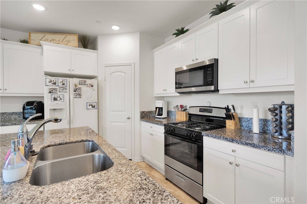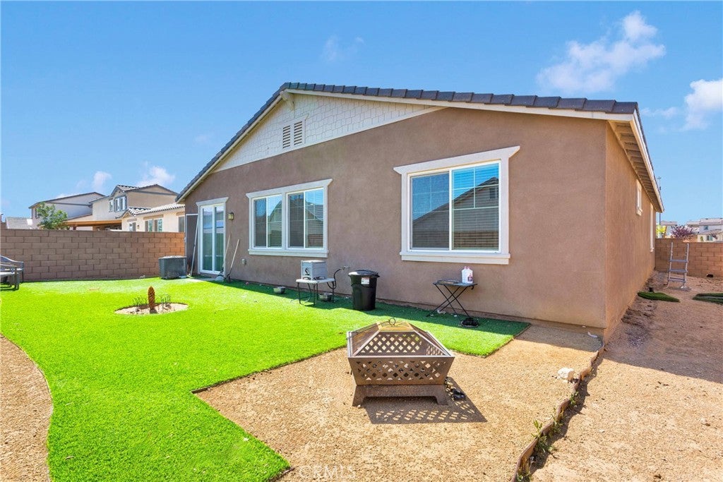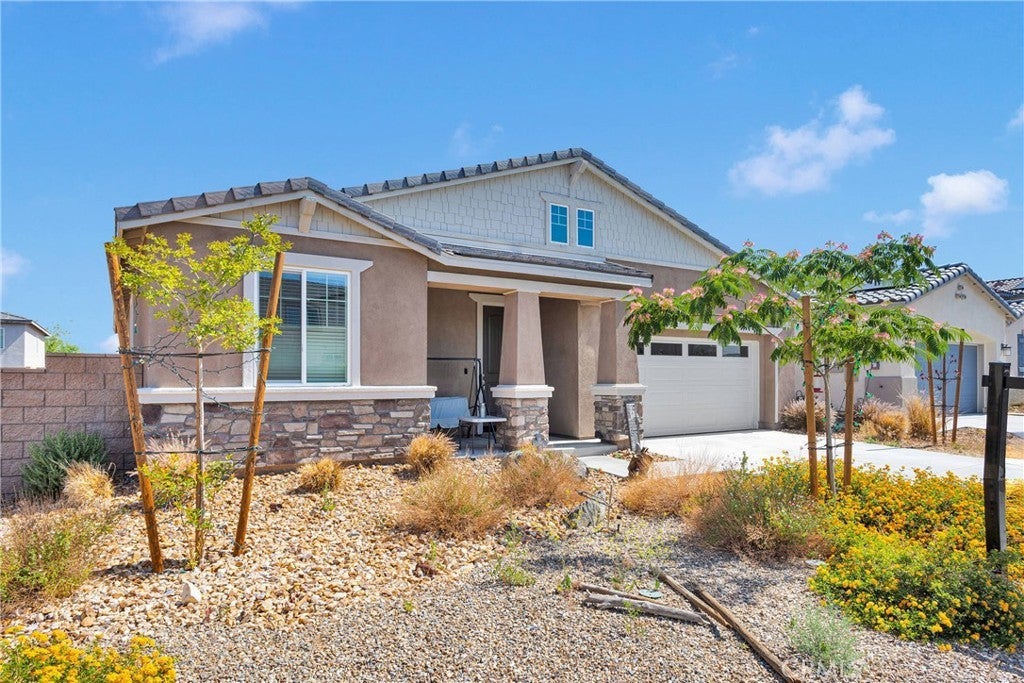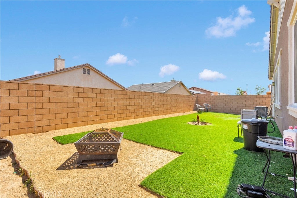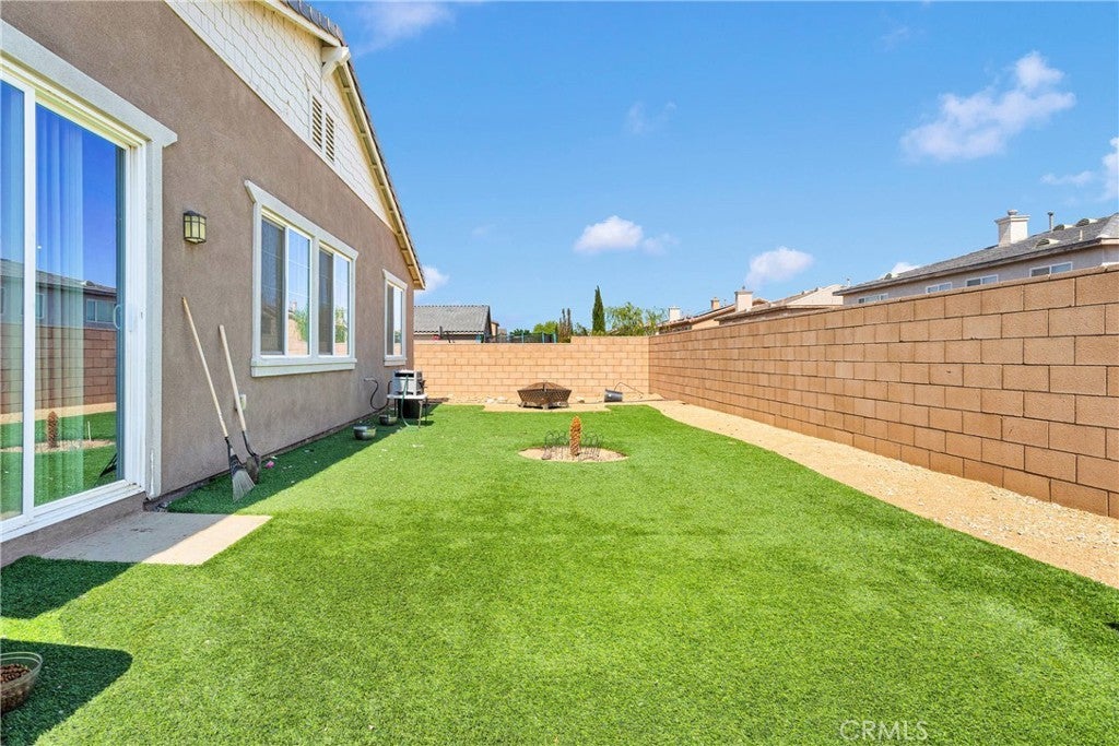 BACK ON THE MARKET! Buyer could not procure the loan - Beautiful 4 bed, 3 bath single story home built in 2022 located in a new Victorville community! This spacious, move-in ready home features a bright open floor plan with tons of natural light, granite countertops, white kitchen cabinets, a large pantry, and laminate flooring throughout the main areas. Carpet and linoleum in select spaces for added comfort. The primary suite includes a large walk-in closet and en-suite bath. Enjoy a large indoor laundry room, whole house fan, and plenty of storage throughout. The fully landscaped backyard with turf offers easy maintenance and great space for entertaining. Large 2-car garage. Close to schools, shopping, and commuter routes. A must-see! Also enjoy NO HOA & NO MELLO-ROOS!
