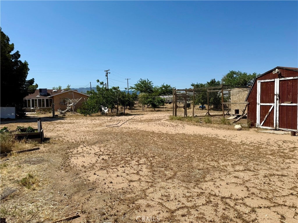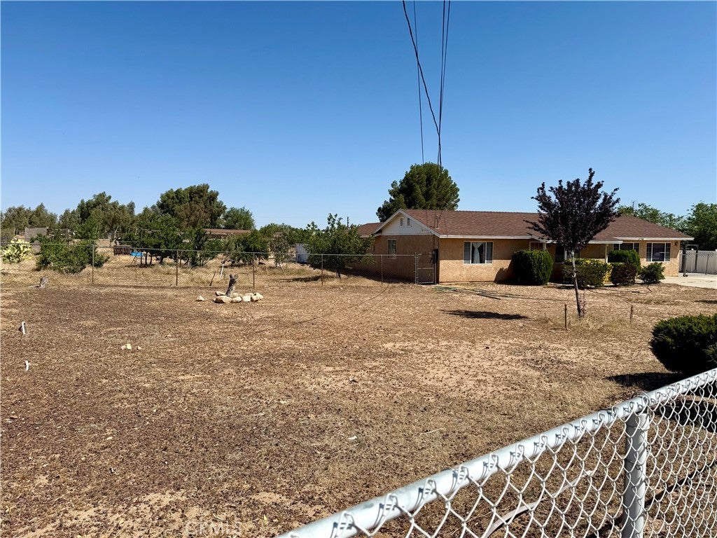 Hesperia 3 Bedroom 2 bath home 1.44 acres level lot horse property, nice kitchen tile counter tops in good condition lots of cabinets plus a walk-in pantry, spacious dining room, 2 car detached garage 980 sq ft approx. Central Air and Heat, all fenced cross fenced fruit peaches Apricots Almonds Walnuts Cherries Apples Plums Pears Grapes, and more covered patio 16x30 approximate, close to I and Main Street, near schools, a 4th bedroom behind garage and 3/4 bathroom, all fenced in and cross fence lots of junipers, quiet street, PENDING CANCELATION OF CURRENT ESCROW