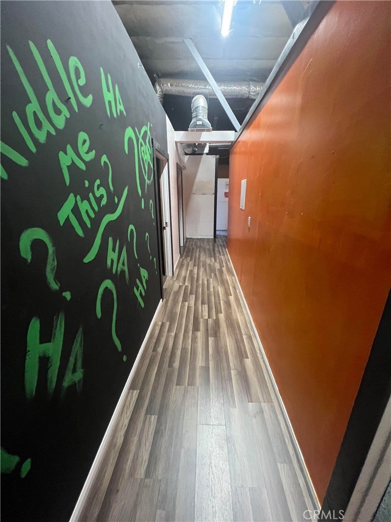 ±2,000sf commercial unit with roll-up door. Formerly utilized as an escape room this suite offers a build out consisting of a front office area with multiple small rooms, some with hard lid ceilings others with open ceilings. The space is equipped with a central AC as well as swamp cooler and drop-down gas-powered radiant heater. Endless possibilities abound within this versatile suite.