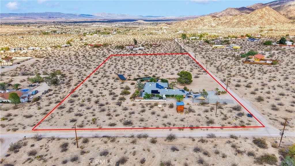 Private desert estate on 2.5 acres with pool, spa, solar, and panoramic views! Ideal for second home, retreat, or high-end vacation rental. Located in one of the most desirable areas of Twentynine Palms, It's no secret why this property is highly rated & always booked! With EXECELLENT management at a favorable 12% rate and a prime location in a community of upscale luxury homes *BEL AIR OF 29 PALMS!* Enjoy modern amenities such as a solar-heated pool, NEW hot tub, and a woodstove that efficiently heats the entire house. Whether you're looking for your next STR or paradise to call home, come take a look, you won't be disappointed! The ultimate blend of seclusion and convenience with this meticulously curated 2,825 sqft desert retreat sitting on 2.5 acres. Enhanced by a permitted garage conversion to a spacious family room, this home offers a versatile den that can easily transform into a 5th bedroom, optimizing its appeal as a (STR) with a 12-person occupancy. Enjoy effortless ownership with this turn-key property, sparing you the high costs and challenges of renovations. The property has CONSISTENT weekend bookings ALL YEAR reflecting its popularity. Just minutes from grocery stores and a short walk to Joshua Tree National Park, the home offers 360-degree sunrise and sunset views, a vibe of serene isolation, and efficient solar panels to REDUCE the high cost of electricity. SOLD FULLY FURNISHED! The upscale, eclectic decor, curated with unique antiques and high-end consignment finds, sets this home apart. This property is a RARE GEM, ready to welcome its new owner with MINIMAL effort and MAXIMUM enjoyment.