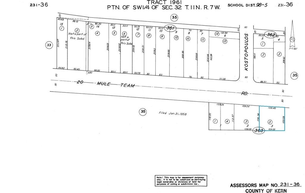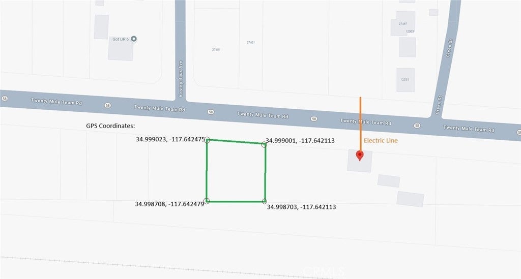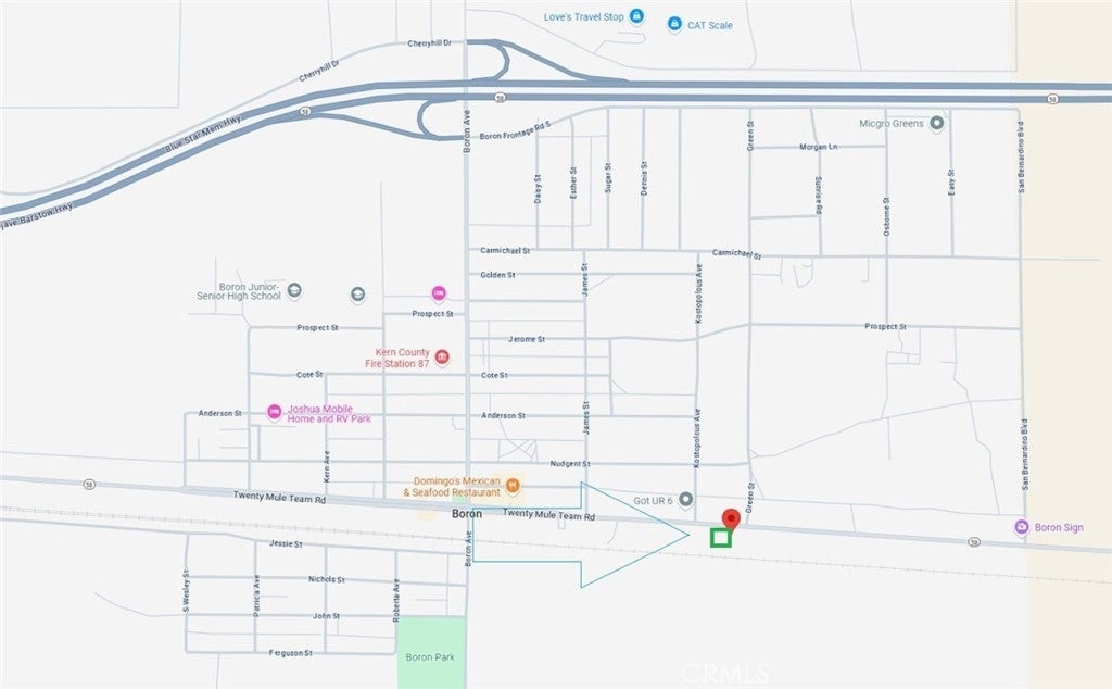 27400 20 Mule Team Rd, Boron, CA 93516 For sale is an almost 12,000 sq feet Commercial vacant lot on Twenty Mule Team Parkway in Boron, CA. Some of the allowed uses are bed and breakfast, residential dwellings above commercial, offices, retail, car dealerships, bar/tavern, restaurants, etc. Priced to sell. GPS Coordinates: Front: NW: 34.999023, -117.642475 NE: 34.999001, -117.642113 Rear: SW: 34.998708, -117.642479 SE: 34.998703, -117.642113