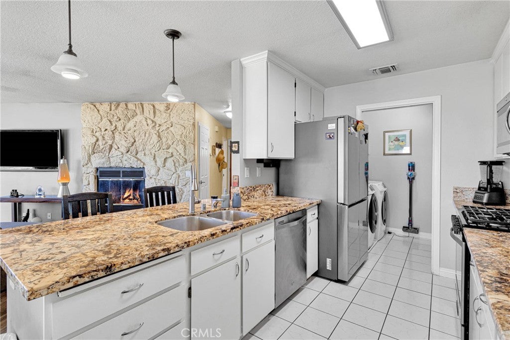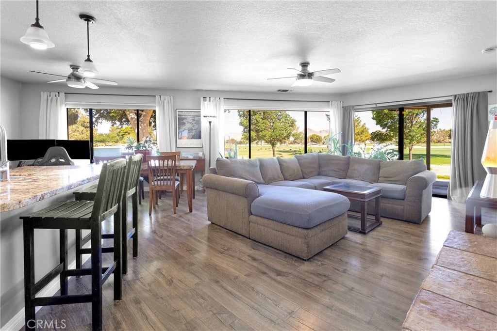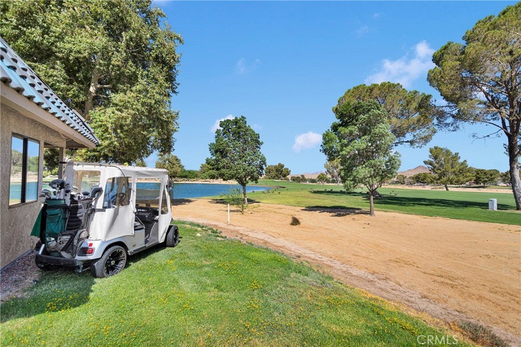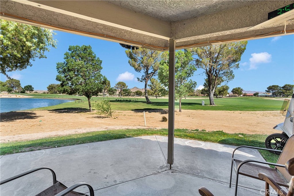 New price!! You’re in luck! The condo with the BEST view in Silver Lakes is now available. This resort community includes an abundance of amenities. This particular unit is an end unit with an unobstructed view of the pond, the golf course and mature shade trees. It also enjoys the serenity of the sound of the water feature. The covered patio overlooks this impressive and serene setting. The interior is designed to bring the impressive view indoors with large windows outfitted with custom remote operated cellular shades. The view is panoramic. This home’s upgraded interior includes vinyl wood-look flooring, granite counters, upgraded lighting and fixtures. Stone hearth fireplace in the living room. Large dining area perfect for entertaining. Open floor plan accommodates a large sofa suite. Split floor plan for the enjoyment of privacy. The primary bedroom suite overlooks the green landscape and water as well. Indoor laundry with storage in a separate room. This home is built for every day enjoyment, or as a peaceful vacation destination. Want golf? Swimming? Parks? Fishing? Well, Silver Lakes HOA and the Fairway Court condo association offer all of that included! The finished garage includes a workshop/hobby area, walk-up attic access; space for your golf carts bikes, water toys, and more. This home is ready to go as a vacation getaway with great proximity to Los Angeles, and the Ontario International Airport. Silver Lakes in Helendale, CA is an oasis. The picturesque, well-maintained master planned community offers a lifestyle where you can vacation where you live. Come see what awaits in this gem of a setting. This is a rare find with a breathtaking setting. Seller will review all reasonable offers. Don’t be shy come take a look at this home today!