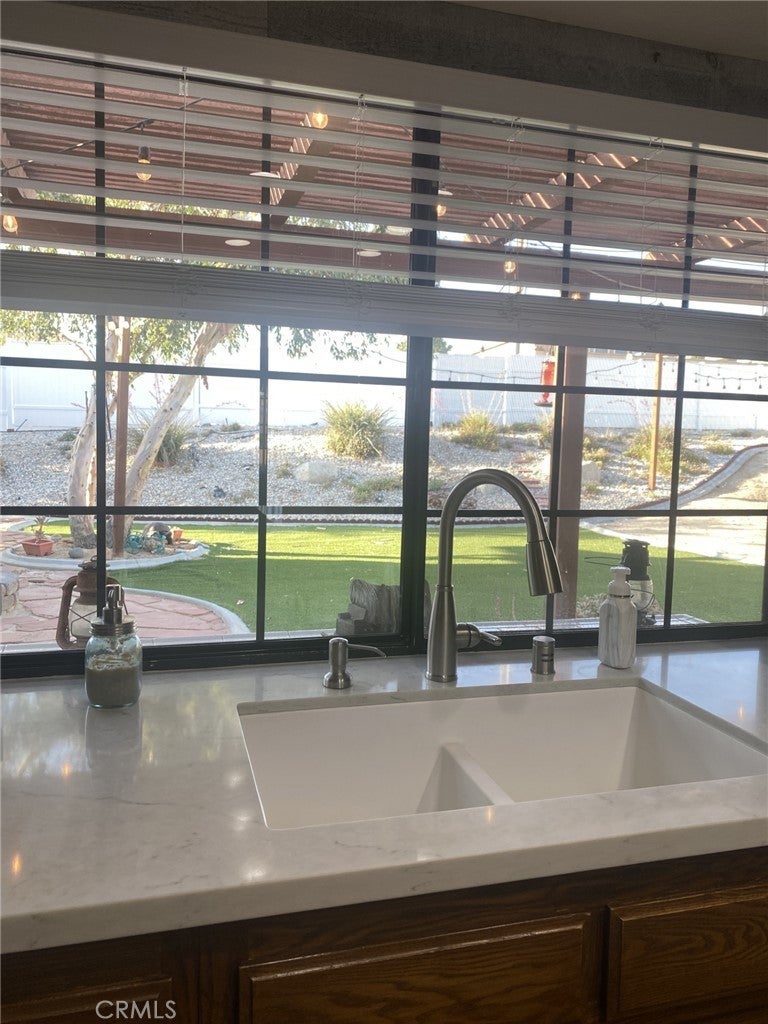 Immaculate 3 bedroom with semi-split floor plan. Large formal living room with dual sided fireplace and formal dining room, family room opens to the kitchen with stone counters and breakfast bar and it has a closet pantry opening to laundry room with lots of storage. Great view of private and well landscaped rear yard with vinyl fencing all around.Great city view from front of the home as well. Large primary bedroom with walk-in closet, and bright and airy master bath with sunken tub and separate shower area. French door opens to patio area with serene yard and low maintenance landscaping. Oversized 2 car garage and lots of room for RV, boat, etc. Two good sized storage sheds and easy access through circle drive. Beautifully lit front and rear yard, great for entertaining. This home has it all and is well maintained inside and outside. Just a few blocks east of Apple Valley Rd. and close to major shopping and all conveniences. Grab it now before it disappears!!