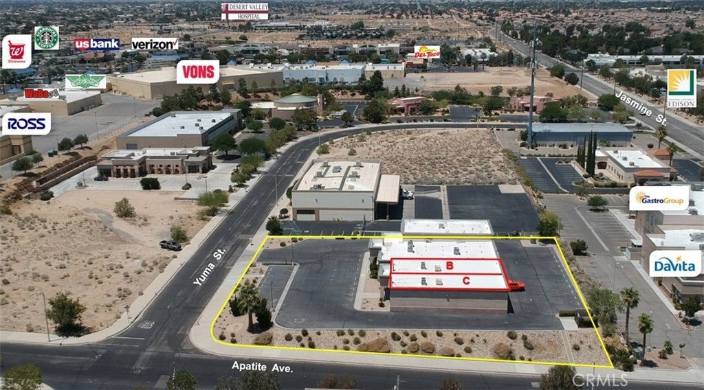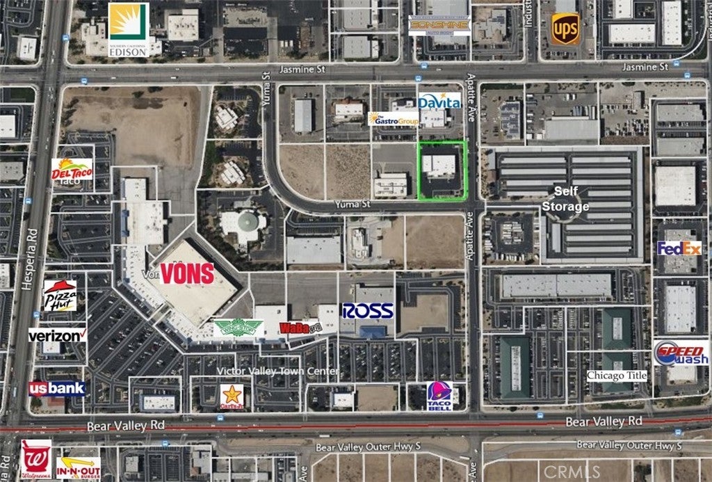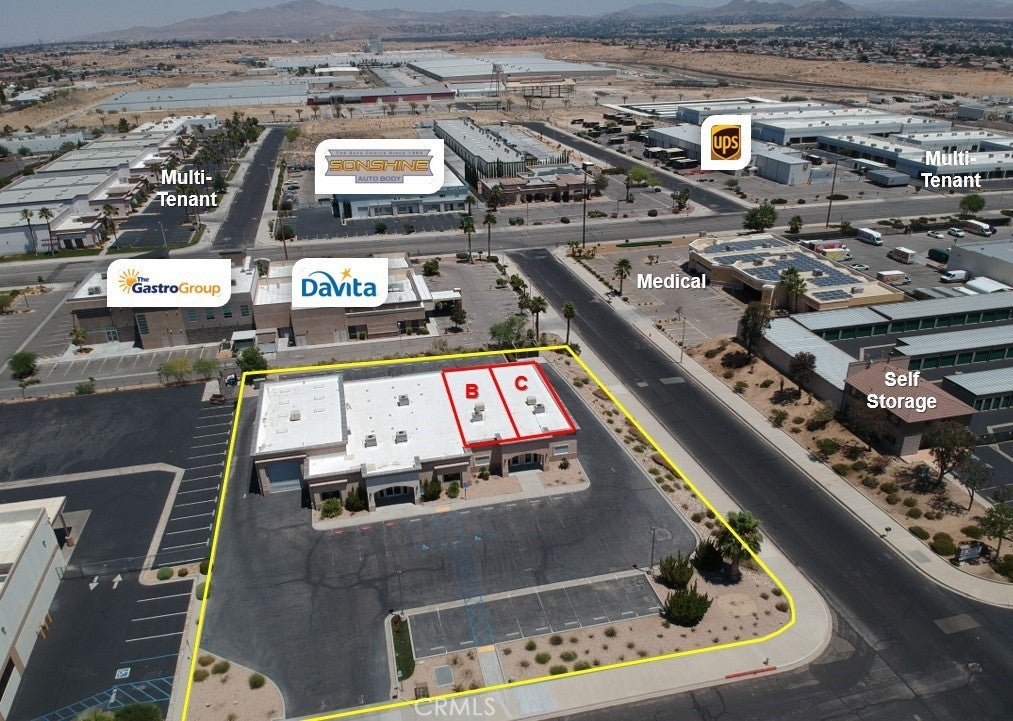 FOR LEASE. TWO very clean ±1,550 Sq. Ft. units, each with ±917 Sq. Ft. of Warehouse and ±633 Sq. Ft. of Office space. Asking $1.50 per Sq Ft. MG or $2,325 per month, per unit. The warehouse has a ceiling height of 10’ and a roll up door that’s 8’ high. Both units have an HVAC in the office, drop heaters in the warehouses, fire sprinklers and 220V power if needed. The units can be Leased together and a door can be installed between the two units if the user chooses to do so. The property has plenty of parking in the front and back of the building. Centrally located in the Heart of the High Desert only ±855 feet north of Bear Valley Road. This prime commercial building sits on the Northwest corner of Yuma St. & Apatite Ave. adjacent to the Self-Storage Center. Surrounded by a wide variety of businesses like Auto Body, Fast Food, Medical Office, UPS and Shopping. Zoned for a wide variety of users and businesses. Available units in this area typically Lease fast.