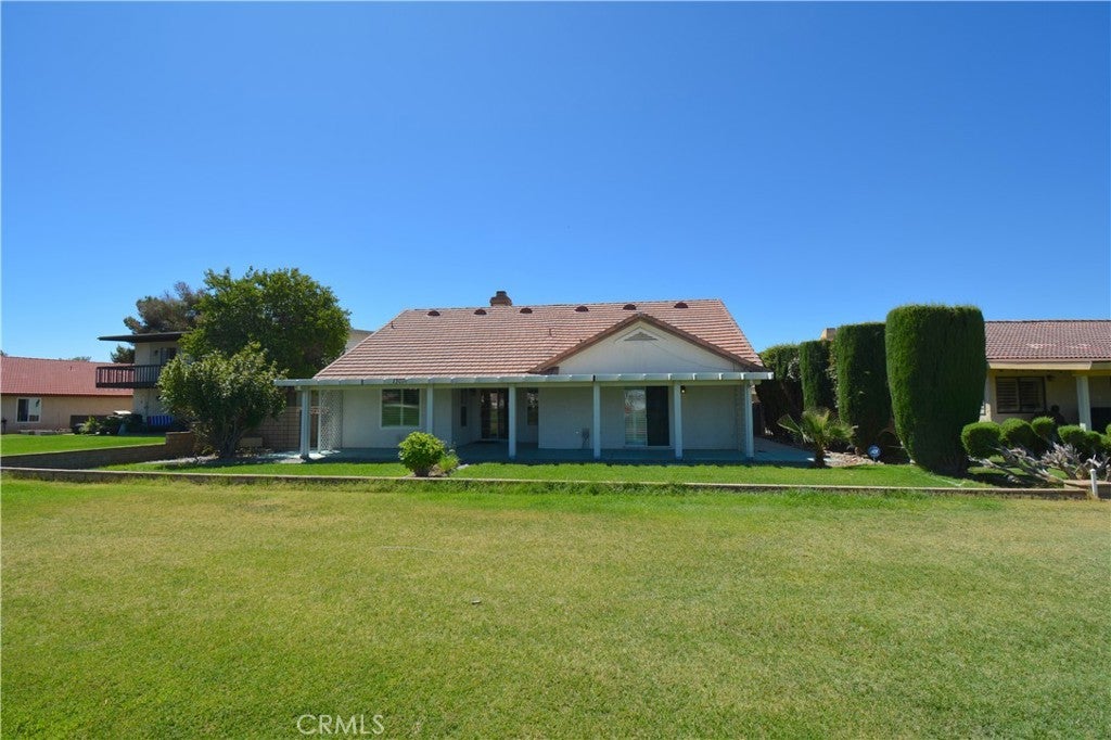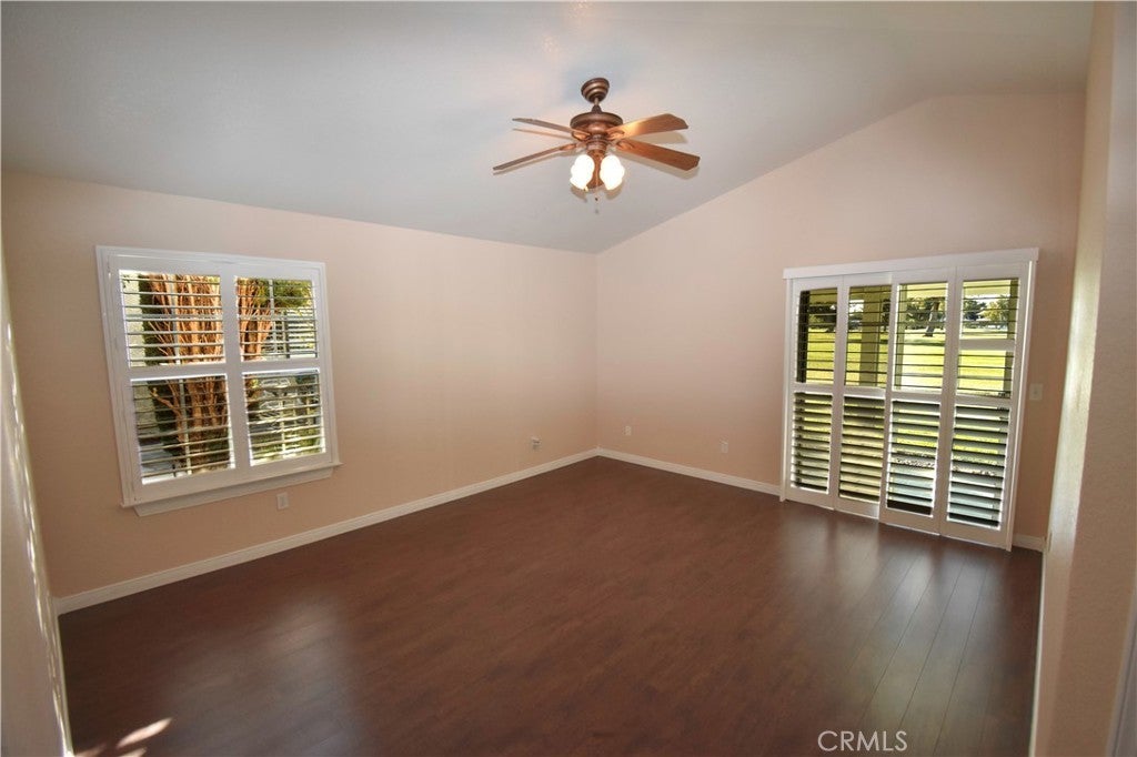 This beautiful 3 car garage home is nestled in Spring Valley Lake on the golf course. This home offers 3bd, 2ba with 1890sqft of living space. The inside has been freshly painted from top to bottom, including bathroom and kitchen cabinets. Beautiful White Shutters are throughout the home. It's a blank canvas and ready for you to add your personal touch. As you walk in the front door, you see the open and spacious Living/formal dining area with a fireplace in the center, to separate and give it a cozy feel all year long. The kitchen can be accessed from either the living or dining area and offers an open feel. Whether you are Watching your favorite shows, entertaining family and friends, preparing a delicious meal in your kitchen or just sitting at your table enjoying a cup of coffee, you will have picturesque views of the beautifully scenic golf course. As you head down the hall you will find access to the 3 car garage through the spacious in door laundry room. Continuing down the hall is the Guest Bathroom and the 3 bedrooms with the spacious primary bedroom at the end. The primary bedroom offer's the scenic view of the golf course along with access to the Back porch and a walk-in closet with built in storage. The Primary bathroom has a custom Shower, with a raised curb to easily get in and out. This house has Solar Panels and is fully landscaped. Come see this beautiful home!