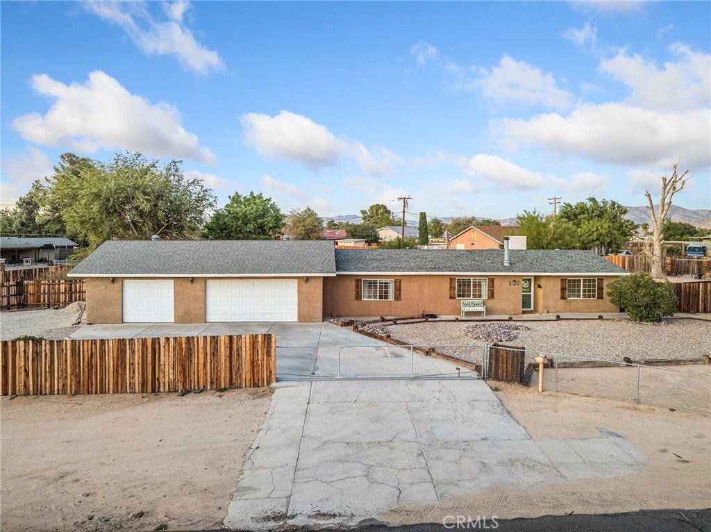 This Apple Valley charmer is a gorgeous 3-bedroom 2 bath home offering extremely well-thought-out living spaces, perfect for everyday life and effortless entertainment with family and friends. The spacious living room & dining room offers warm wood floors, shiplap walls, a cozy wood-burning stove for the perfect winter ambiance and tons of details that bring endless character. To the right of the main living areas is a stylish kitchen with quartz counters, stainless steel appliances, and adorable custom touches throughout, included is a large coffee bar or serving bar that has tons of room for all the fixins and adds just the right vibe to this space. Tucked just off the kitchen is an oversized butler’s pantry/utility room — with space for a second fridge, a deep freezer, tons of dry goods storage, indoor laundry, and all your countertop appliances. This room could also become an office or a 4th bedroom if needed. The primary master suite feels like a true retreat; it offers plenty of space not only in the bedroom but in the master closet as well with sliding glass doors that open up to the enchanting backyard... Let’s just talk about that backyard! There's an amazing outdoor kitchen and bar setup that’s perfect for summer nights of grillin & chillin, a charming playhouse for those sweet kids in your life, a large storage shed for whatever your heart desires, a large fenced off area for the dogs to have plenty of space to run, RV parking & additional parking incase all the toys don't fit in the 4 car garage. Yes, the 4-car garage with a pull-through is the cherry on top, along with the electric entry gates for extra security. This home has personality, practicality, and the perfect setup to make lasting memories with the ones you love most. Come see it in person, it just might be the one!