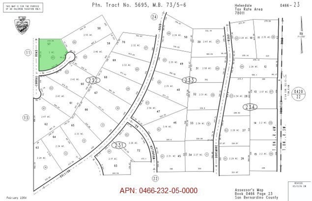 2 Acres WITH A WELL in Helendale, CA – OWNER FINANCING AVAILABLE APN: 0466-232-05 | GPS Coordinates: 34.78355, -117.25001. Zoned Rural Living (RL) by San Bernardino County, this property allows for residential use, along with accessory agricultural structures and crop production, making it ideal for a homestead or desert retreat. Owner will finance with $30,000 down: First Trust Deed of $34,950 at 8.5% interest for 5 years with monthly payments of $717.05. Overhead power is located approximately 280 feet north along National Trails Highway. Local property owners typically use private water wells, septic systems, and propane tanks for utility needs. Located just off the highway, Note: Property does not yet have a physical street address. Map boundary lines are approximate—buyer to verify zoning, boundaries, and utility availability to ensure the property fits their intended use.