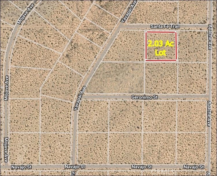Seller financing may be available for this 2.28 acre lot is only 1 mile west of Highway 395 is flat and don't have any Joshua Trees, this lot is really close to highway 395, easy to find and you don't need a 4x4 vehicle to get there, it is very easy to find, if you going north on Highway 395 from Shadow Mountain Rd, just drive 5.2 miles to Wheeler Rd, pull to the side to safely make a left on Wheeler Rd, then just drive for one mile to Apache Trail which is only a mile from Highway 395, and is the first street you will see to your left, make a left on Apache Ave, and drive less than one mile to the corner of Apache Ave and Santa Fe Trail which is only about 0.8 of a mile distance from Wheeler Rd, make a right on Santa Fe Trail and the lot will be on your left, coordinates are 34.799204, -117.509321 please submit offers to homesbycarranza@aol.com call with any questions. , the lot is pretty much flat, this may be a good investment to keep your money safe, while maintaining a pece real estate in your portfolio, this lot is just a short driving distance to Victorville to the south or to Helendale to the east, from where you can easily travel north to Barstow or all the way to Las Vegas or north on Highway 395 all the any cities in the northern California. The High Desert is now the future home of the recently approved High Speed Train from Apple Valley to Las Vegas and to the south to Rancho Cucamonga. The project is expected to break ground in the Victor Valley soon and be completed in over the course of the next few years, this projected is expected to bring in jobs and boost the economy of the High Desert.