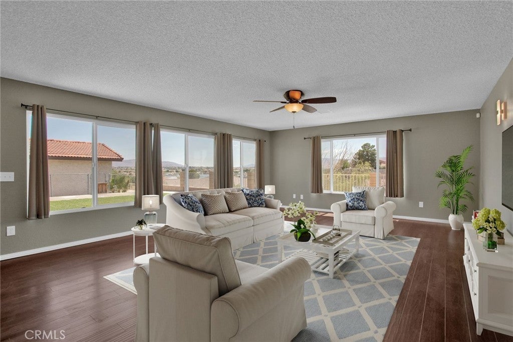 PRICE REDUCED!!! Rare hilltop, cul-de-sac home! Welcome to this gorgeous lake & mountain view home with RV parking in highly desired Spring Valley Lake(SVL). This remodeled 3-bedroom, 2-bathroom home is 1960 sf on a 7200 sf lot, with a perfect blend of style, comfort, and tranquility, for you and your family’s enjoyment. Upon entering, you'll be greeted by a bright airy living space with ample natural light, high valued ceiling and fireplace, creating a warm and inviting ambiance. There is a formal dining room adjacent to the living room, perfect for special occasions. Enjoy the oversized family room, perfect for relaxation and entertainment. The newly remodeled kitchen is the heart of this floor plan, completely open to the family room and covered back patio. It features quartz countertops, new stainless steel appliances, along with a center island having lots of storage space, making meal preparation a breeze. The master suite offers a peaceful sanctuary with a private en-suite bathroom and mirrored closet doors. Master suite includes a sliding door out to the patio, to enjoy the beautiful views, while enjoying your morning cup of coffee. Two additional bedrooms and a second full bathroom. Recent upgrades include drought resistant front yard, remodeled kitchen and bathrooms with all new countertops, and freshly painted interior and exterior. Backyard is perfect for entertaining, new covered patio with ceiling fans for those beautiful summer nights with family and friends, and to enjoy the best view of the annual 4th of July fire work show on the lake! RV parking on the side of the home includes a 30 amp plug. The prestigious Spring Valley Lake community includes the benefits of access to a 200-acre lake perfect for water sports, a beautiful beach for those warm summer days, two family parks, dog park, and 14 fishing areas. The Community Center, offering gathering and monthly activities, is a place to meet neighbors and partake in holiday festivities. There's also a 24-hour security patrol for peace of mind. Families seeking to elevate their lifestyle may join the Spring Valley Country Club within SVL, which offers an array of amenities: tennis and racquetball courts, a fitness center, and 18-hole golf course. The Country club also offers an Olympic-sized pool, Jacuzzi, and a restaurant with sports pub having music regularly on their patio.This house is a must-see and will not last!! ** Some photos are virtually staged to show endless possibilities!!