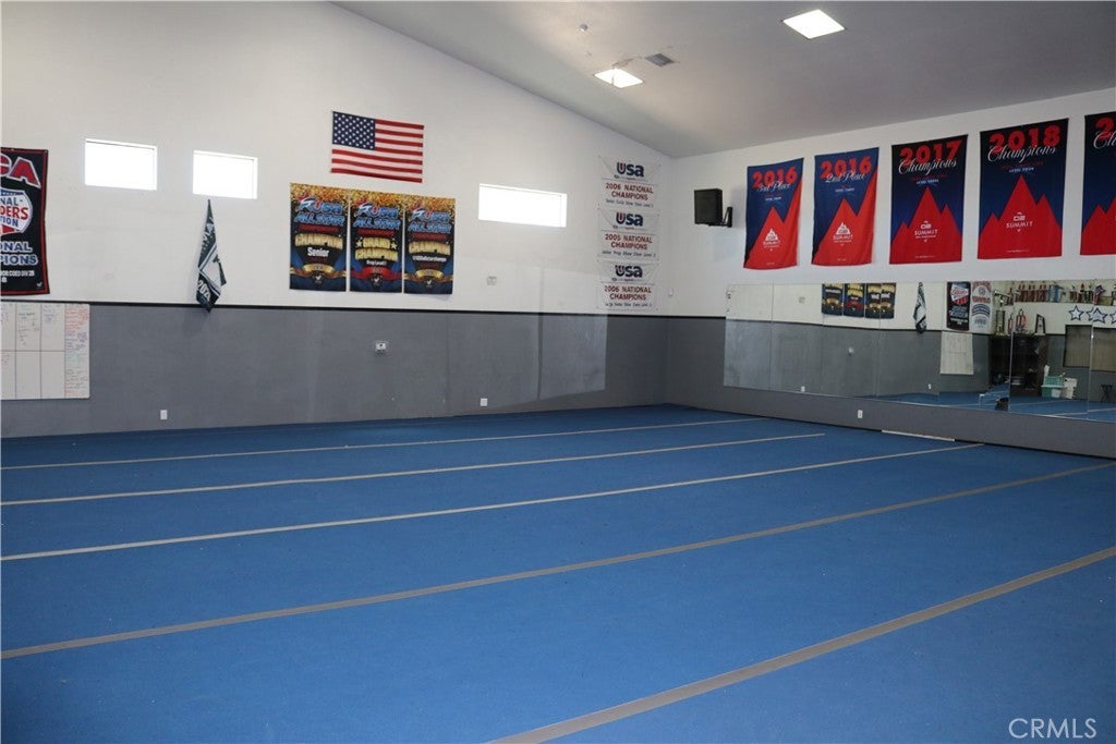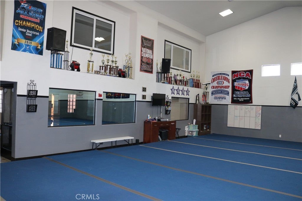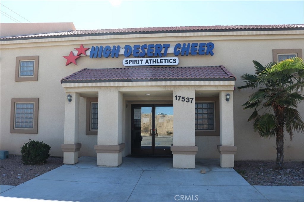 Location Location, located off one of the high deserts busiest highways. Visible to a heavy vehicle count. The building is currently used as a cheerleading gym. 22 foot high ceilings. High bay lighting and exterior parking lot lighting have all been upgraded to LED. The AC/twin pack units run on 3 phase power 110/208 voltage and are located on the roof. Total of 4 restrooms. Lobby restroom is ADA. Stainless filtered drinking fountain. Building well insulated. Building has a lobby area and offices. Building has a roll-up door to parking lot. Building floor is 6 inch 3000psi concrete, stained and sealed. Interior is open concept for the gym floors. Entry is store front doors. Must see this one.