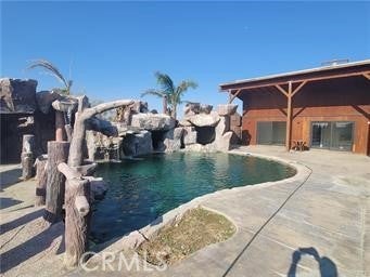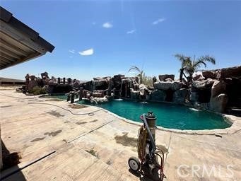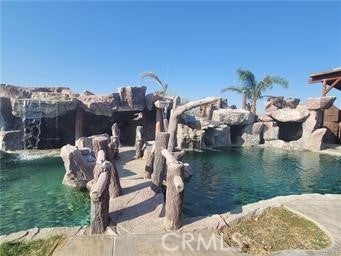 This Pristine Estate home is like having your own private resort to wake up to every day. The main house has five bedrooms and three bath rooms with lots of entertaining space as Well. The house has A huge family room that over looks the pool in the back yard . There is A separate living room and formal dining room area with A nice poker room with A cozy fireplace. The kitchen has granite counter tops and is open to living room . The master suite has A separate sitting area with its own private bathroom with A huge tub and separate walk in shower. Two of the other rooms have separate bathrooms and are very spacious. The other remaining bedrooms are oversized. There is Also a Pool house with two bedrooms and two baths and A kitchen area that over looks the resort pool area. There is paid off Solar with a lot of panels that comes with the home. The back yard is your own private oasis with A huge pool with built in seating that is surrounded by Huge rock grotto, there is A slide, Jacuzzi also A nice built in BBq area . The property is fully gated for privacy and has A lot of mature palm trees with Lots of parking on a circular driveway and Huge garage that can hold up to ten cars with A RV garage as well. The house has its own Water well. The land size is very large with over three acres , The large lot is private and gated.