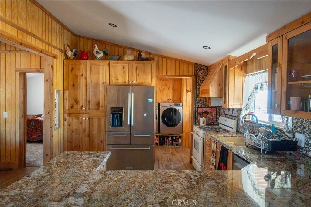 Beautiful recently renovated mini style hacienda property that sits on a spacious 2.07 acre corner lot that welcomes you into an open floor plan, wood kitchen cabinets with granite countertops, laundry area, 3 beds and 2 baths. Large 2 car garage with workshop area. Fenced, garden spot, area for chickens, horse round pen and horse stables. MUST SEE TO APPRECIATE!!!