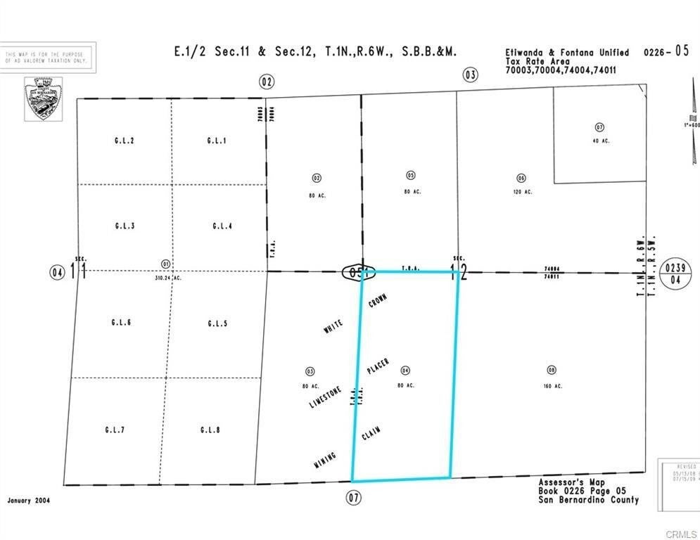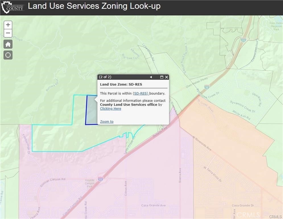 80 ac in the Foothills above North Fontana. County Zoned SD-RES (Special Development). The SD zoning allows for a combination of residential, commercial, industrial, agricultural, open space and recreation uses. The “RES” suffix indicates focus on residential Planned Development projects. Great Opportunity to acquire for the future and the theoretical residential development expansion into the hills. Landsea Homes has a new development at the base of the foothills called Narra Hills.