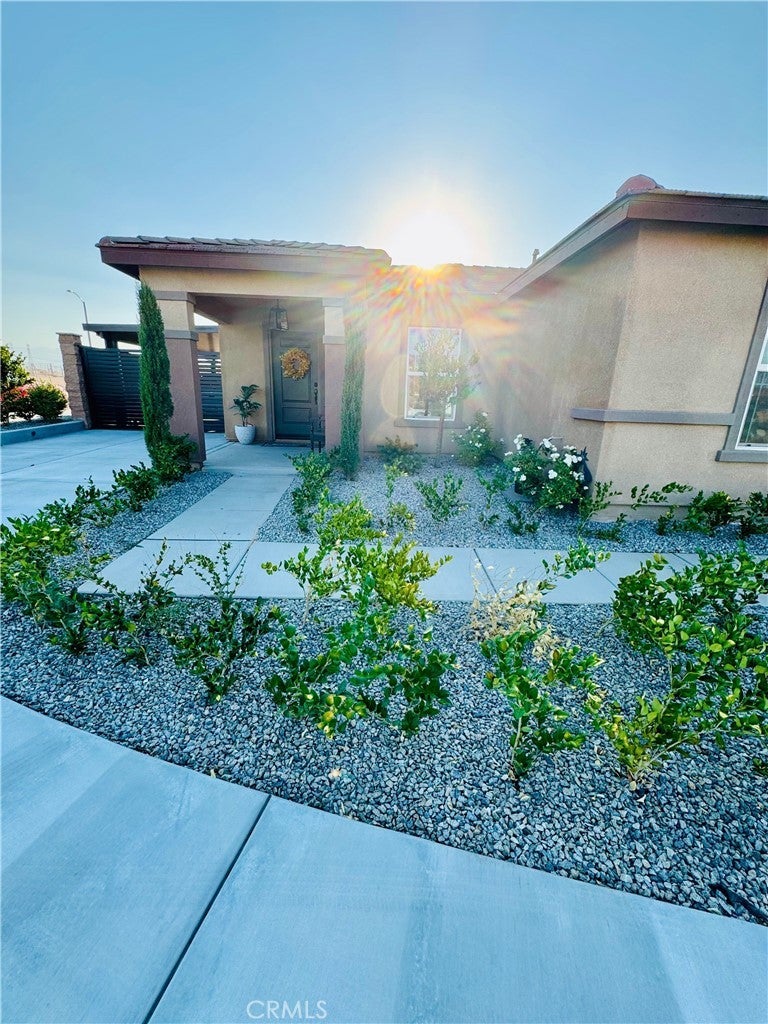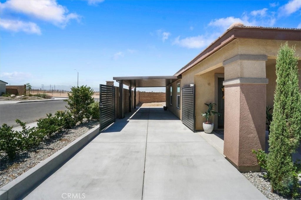 *****Major Price Improvement***** Just like Brand New!! Barely been lived in. Blt. in 2024 with lots of UPGRADES without the wait! You would pay much more with the builder to have all of these luxurious upgrades! ****Paid Solar!!****$20,000 in Extended concrete all around the house including an extra covered parking area with an AlumaWood stylish gate that gives the house the latest trending look! 18 x 50 back concrete deck that continues around both sides of the house and across the front. Landscaping and irrigation and drip system. Complete privacy on this oversized corner lot, secured by a big beautiful brand-new 6 foot block wall--no one will ever build behind you! Upgraded kitchen with Extended bottom cabinets and countertops with a wine refrigerator and floating shelves. Custom mosaic tile as kitchen backsplash. Double sink vanity in the primary suite and the sinks and the shower have never been used!! Blt. in bookshelves in one bedroom and floating shelves in kitchen and den. Metal overhead shelves in garage. Custom decorator wood wall on one wall in the living room. Upgraded light fixtures in Living room and dining room. Extra interior outlets, for total convenience! Upgraded front porch light fixtures. Exterior Security Camera and motion detection floodlights. Custom window shades. No money was spared in making this home complete!! All of the beautiful upgraded furniture can also be purchased! Just like a model home! You must see to appreciate!! Call me for a private tour. Agents please see private comments.