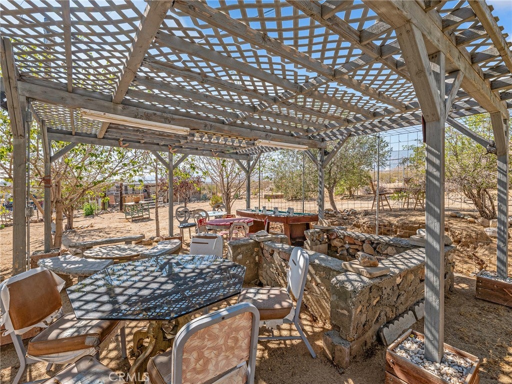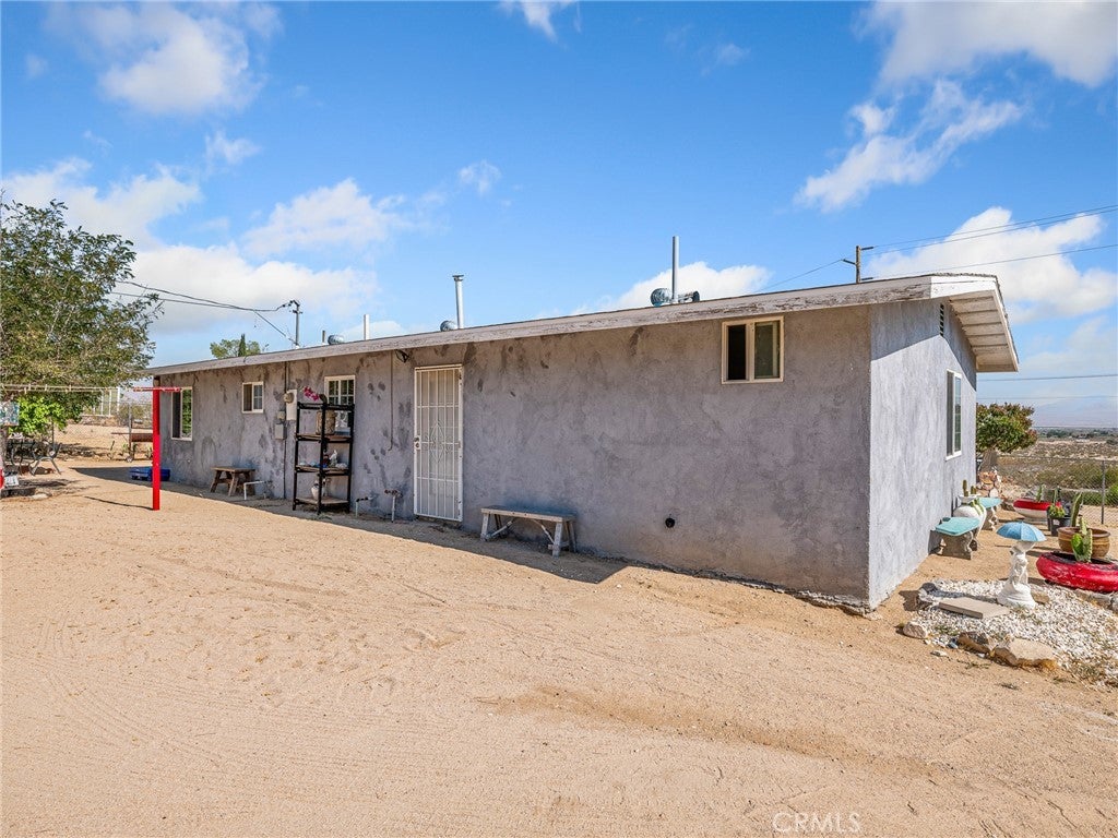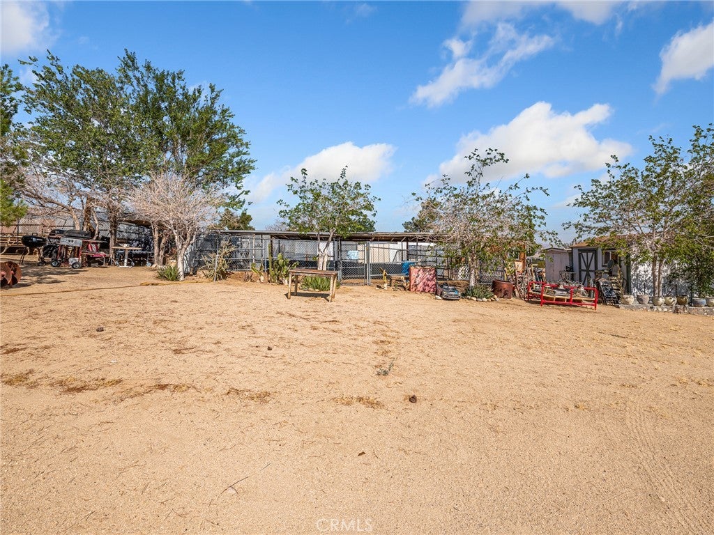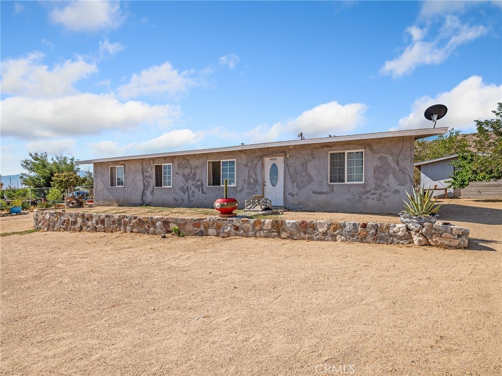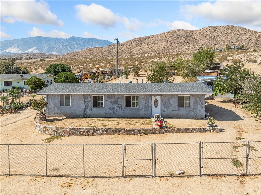 Discover the potential in this 3-bedroom, 2-bathroom home nestled on a spacious 0.75-acre lot with breathtaking views of the surrounding desert and mountains. Located just a short 20-minute drive to Big Bear, this property offers the perfect balance of rural tranquility and easy access to outdoor recreation. Inside, you'll find tile flooring throughout for easy maintenance and a cool, clean aesthetic. The open living space connects to a functional kitchen, ready for your personal touch. The home could use a little TLC, but with some updates, it has all the makings of a fantastic home. Step outside and enjoy the expansive backyard, featuring dedicated animal pens, perfect for hobby farming or 4-H projects, and a shaded outdoor sitting/BBQ area ideal for entertaining or relaxing while taking in the stunning desert sunsets. With plenty of space, natural beauty, and tons of potential, this property is a must-see for those seeking peace, privacy, and the charm of high desert living. (This is a cash sale only.)