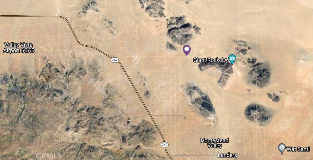 Discover 5 acres in Landers near the iconic Giant Rock. This parcel offers both beautiful views and convenience, with a power pole and what appears to be a water box cover at the corner of Bodick Rd. and Broadway (buyer to verify utilities with county). Surrounded by natural wonders, you’ll find Spy Mountain and Goat Mountain nearby for hiking and exploration, while Joshua Tree National Park is just about 30 minutes away. Whether you’re looking to invest, build, or simply enjoy the peaceful desert setting, this property is full of potential. Don’t wait—opportunities like this in Landers go fast. Come see the possibilities today! APN: 0635-141-45-0000. Latitude:34.339131, Longitude:-116.429012.