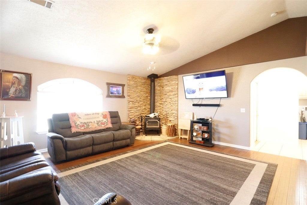 ***Welcome to this inviting 3-bedroom, 2-bathroom home nestled in a quiet and desirable Hesperia neighborhood!!*** Perfectly blending comfort and convenience, this home offers a warm and welcoming atmosphere both inside and out. Step into the spacious area, where natural light fills the room and creates the perfect setting for family gatherings or quiet evenings at home. The open living room features a wood burning stove. The kitchen features granite countertops, a pantry and lots of cabinet space. The primary suite provides a private retreat with its own full bathroom and even a fireplace to keep you warm on those chilly evenings. Two additional bedrooms offer flexibility for family, guests, or a home office. A second bathroom ensures plenty of space for everyone. Outside, on its over half acre lot, you will enjoy your own private backyard, complete with its custom deck and a brand new above the ground pool, perfect for family fun and relaxing. This home also features vaulted ceilings, ceiling fans throughout, fresh interior paint, a laundry room, window blinds in all rooms and is energy efficient with 35 solar panels. The garage is finished, and RV parking is easy with a 50-amp plug included. Perfectly located near restaurants, shopping, parks, schools and churches. Also, Freeway close for commuters. This home is an Absolute Must See!!