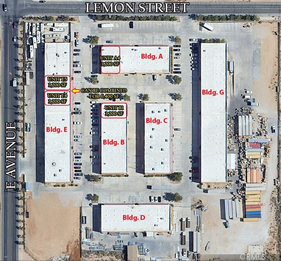 This is a multi-building, multi-tenant, concrete tilt construction, industrial condo complex with each unit featuring a small office, restroom and warehouse space totaling ±3,200 SF. (Units E4 & 5 can be combined for a total of ±6,400 SF) The leasing rate $1.25 PSF/month plus $0.10 NNN fees. Long-term leases of 3-5 years preferred. (do not disturb existing tenants)