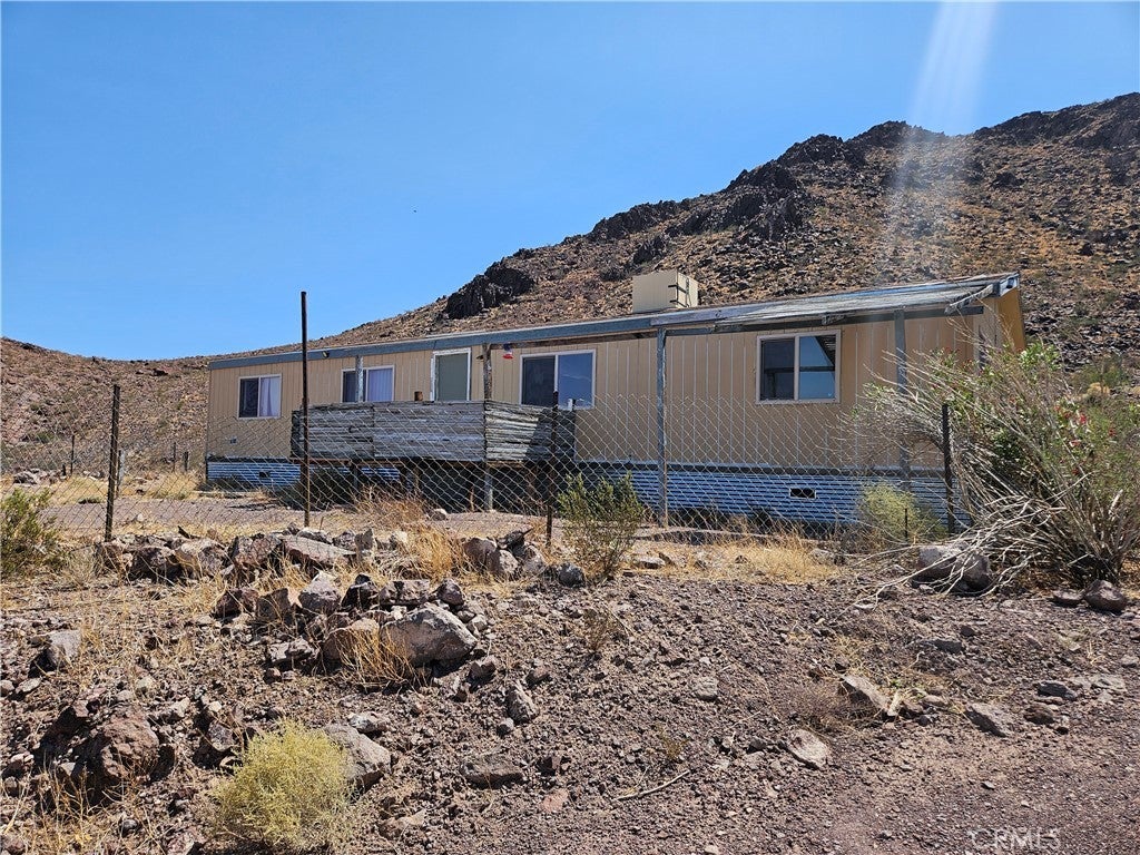 Majestic Mountain Retreat with Sweeping Views Escape to peace, privacy, and unmatched views with this 3-bedroom, 2-bath manufactured home on 9.66 fully fenced acres. This property offers panoramic vistas of rugged ranges and passing trains — a view arguably the best in all of Newberry Springs. Your backyard is the mountain itself, providing a dramatic and mysterious backdrop. At the front of the property, a stocked pond with a solar pump adds to the natural charm, while Bighorn Sheep are sometimes spotted roaming nearby. With underground internet access, you can stay connected while enjoying wide-open skies and quiet surroundings. The home features 1,344 sq. ft., a split floor plan, and indoor laundry. An oversized shed offers extra space for storage or projects, ideal for those who value self-sufficiency and room to create. Only 20 miles from the city, this private retreat delivers true solitude without losing access to modern conveniences. While the home could use a handy touch, it’s a rare chance to claim a one-of-a-kind property surrounded by untamed nature and breathtaking scenery.