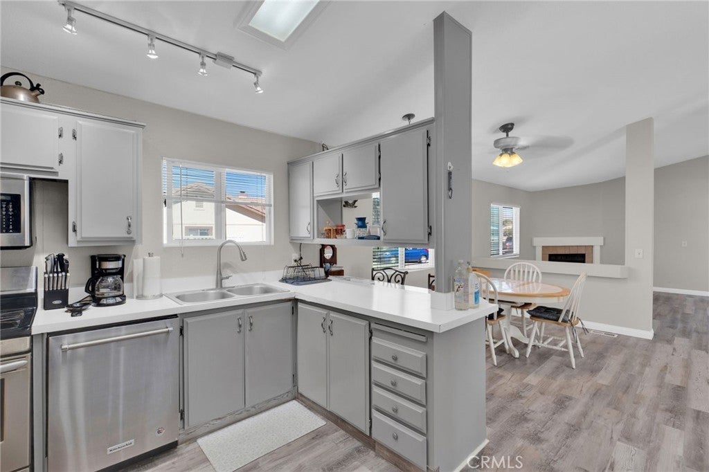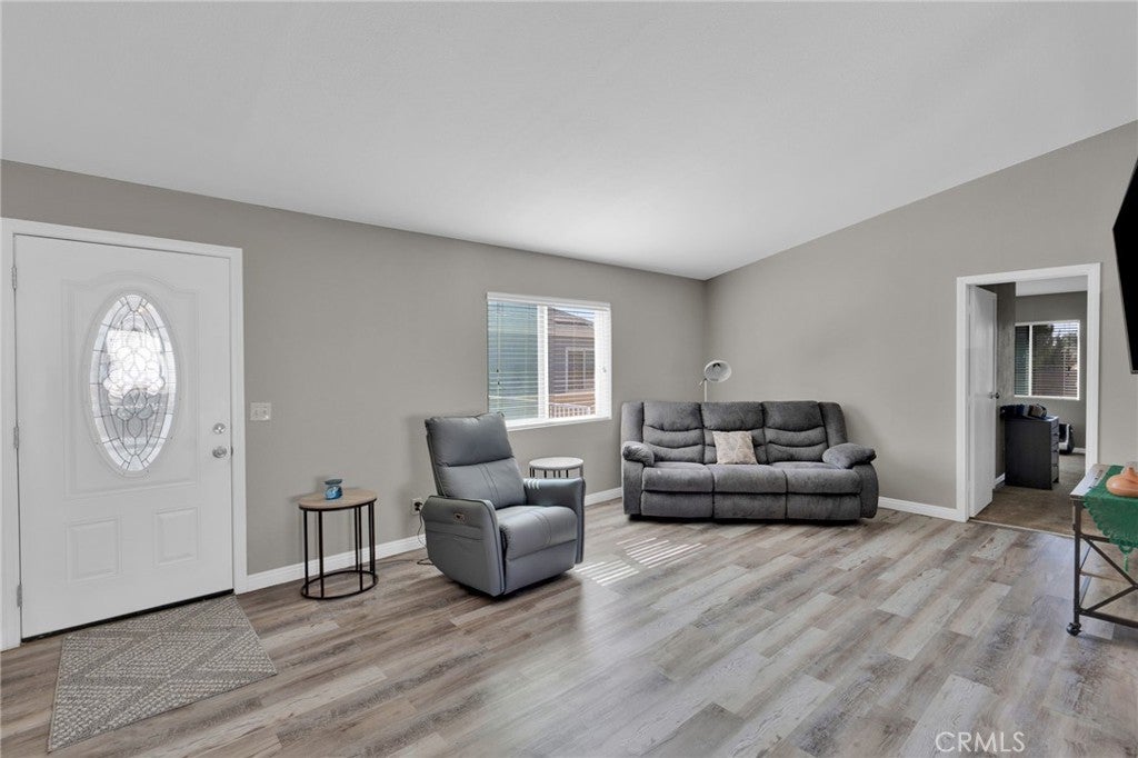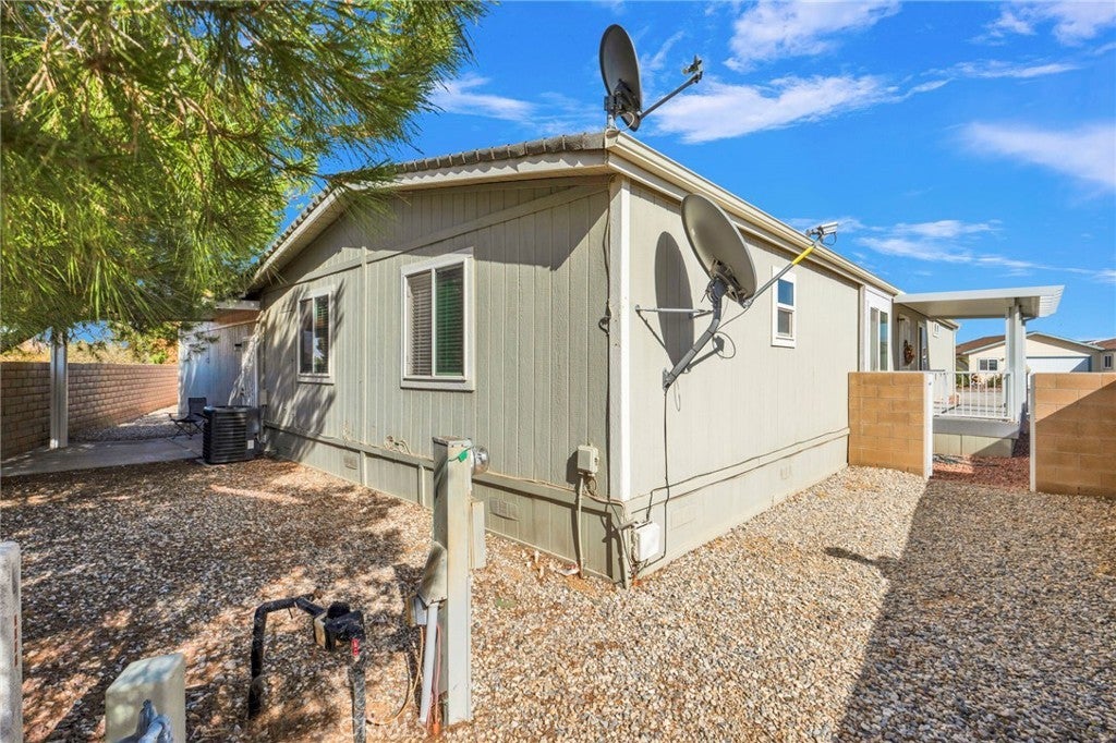 Welcome to this beautifully maintained manufactured home located in the Vista Del Rosa senior community (55+), Apple Valley. This spacious home offers 4 bedrooms and 2 full bathrooms in a split floor plan, with 1,782 sqft of comfortable living space. Enjoy a charming, covered porch. Inside, you'll find a warm entry with updated flooring, a large living room, and a cozy family room with a corner fireplace featuring a mantle and tiled hearth. The kitchen is bright and functional, the primary bedroom is roomy and inviting, with a private bath featuring a garden tub and step-in shower. On the opposite side of the home are three additional bedrooms and a second full bath. The home also includes a 2 car- attached garage with access to the back yard, dual-pane windows throughout. The home is part of a gated 55+ community, which offers amenities and a mature neighborhood feel. Don't miss this opportunity to own a generous, well-designed home in Vista Del Rosa-a place you'll be proud to call yours.