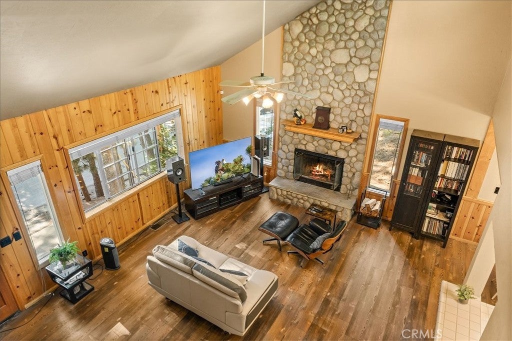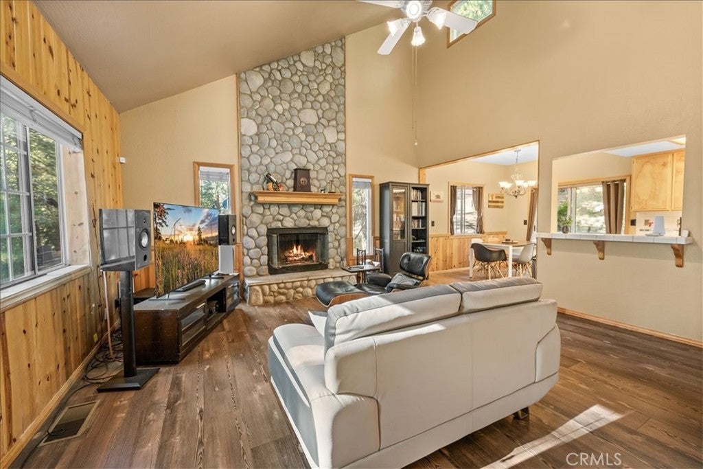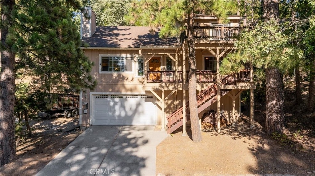 Assumable Loan at 2.375% — $297K Balance! This inviting mountain home is tucked in a quiet cul-de-sac—peaceful, yet commuter-friendly, and just a short drive to Snow Valley Ski Resort, Lake Arrowhead, and National Forest land. With a new roof and new flooring throughout, this home is move-in ready with plenty of opportunity to make it your own. The main level features an open floorplan with two spacious bedrooms, a full bath, and a bright kitchen/dining area that flows seamlessly to the deck—perfect for soaking in the fresh mountain air. The living room is the heart of the home with vaulted ceilings and a striking stone fireplace that creates warmth, charm, and character. Upstairs, the private master suite offers its own brick fireplace, walk-in closet, and a deck with tranquil mountain views—a perfect retreat after a day of adventure. Downstairs you’ll find a convenient laundry room, build-up storage, and direct access to an oversized two-car garage complete with a workbench and extra space for tools, hobbies, or all your mountain gear. This is a solid, well-situated mountain home with character, comfort, and unbeatable financing options. Seller is motivated—don’t miss this rare opportunity!
