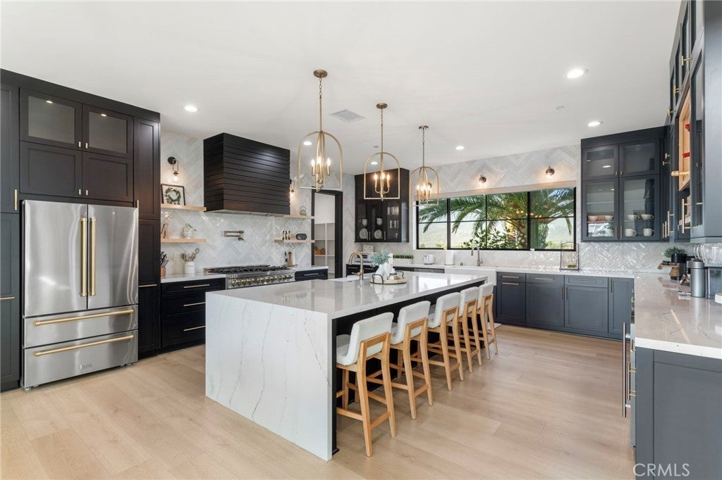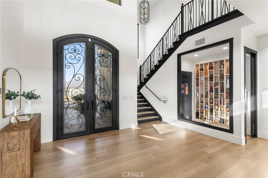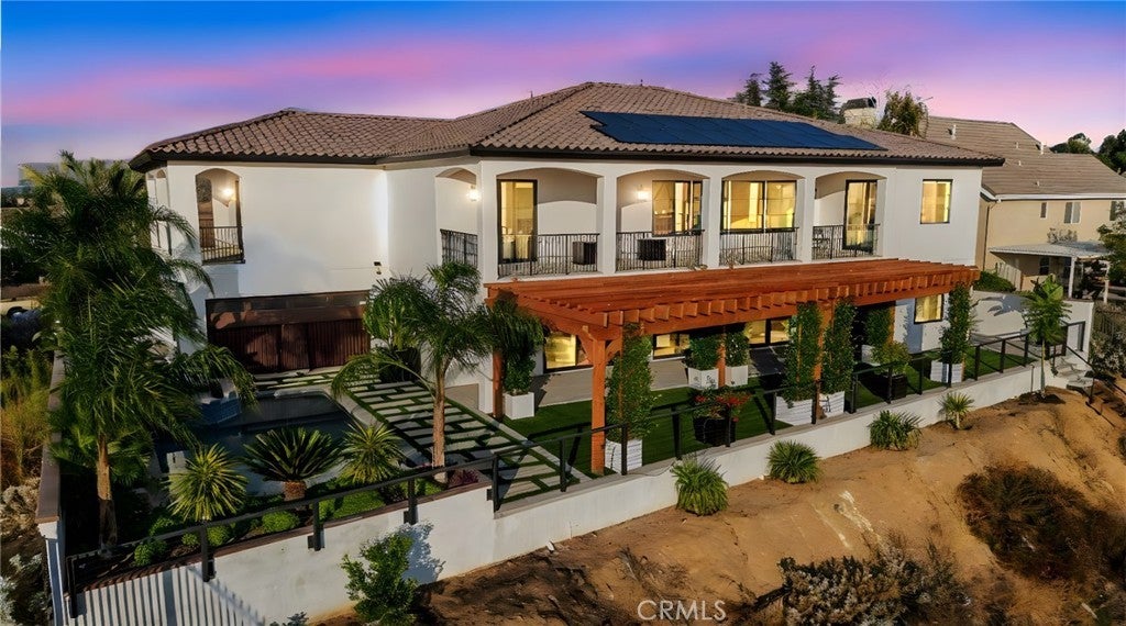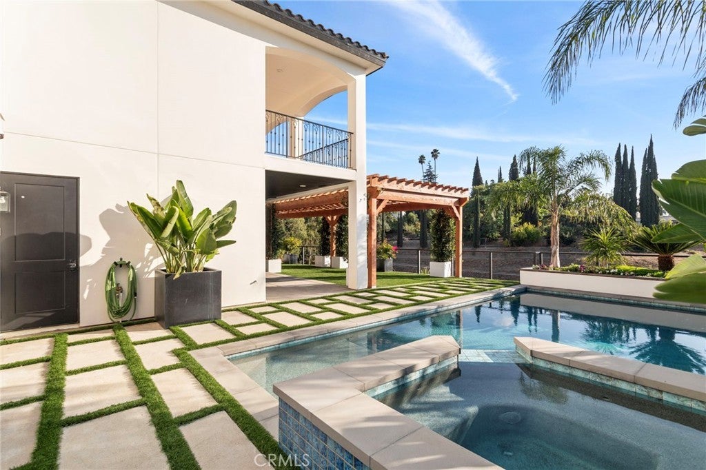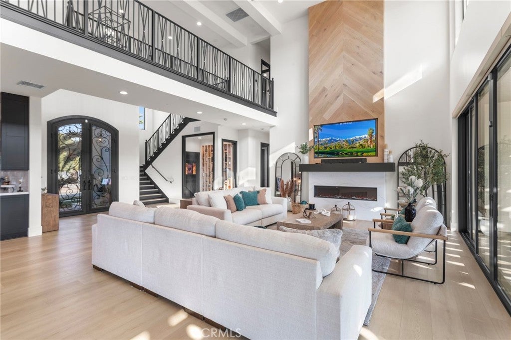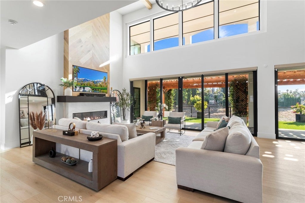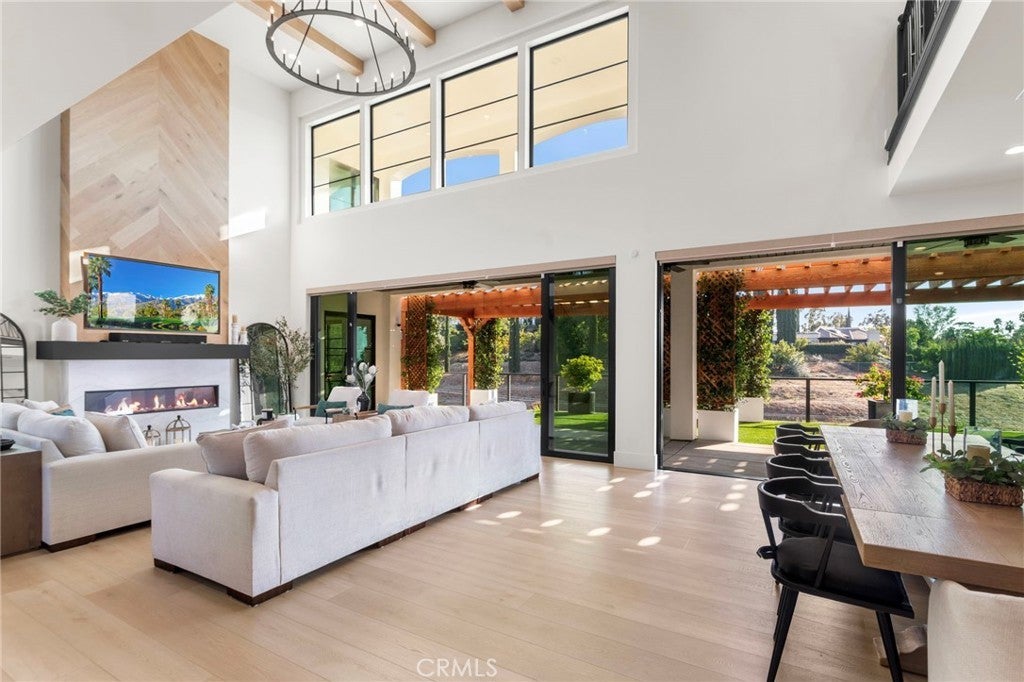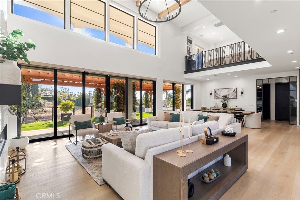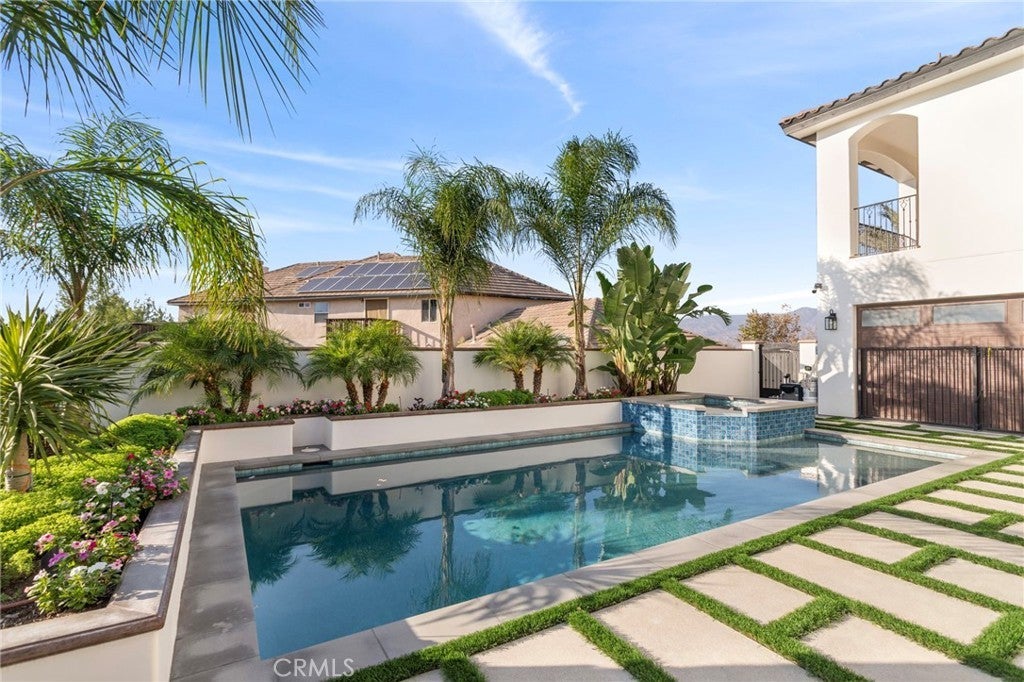 Experience refined California living in this exquisite estate with over 4,600 sq. ft. on nearly half an acre. Inside, soaring 9-ft doors, an expansive living room, upstairs loft, and a chef’s kitchen with a pot filler faucet, wine fridge, and under-cabinet lighting set the stage. A dramatic 30-ft wall of glass opens the home entirely to the backyard, creating seamless indoor-outdoor living. Unique details include motorized blinds, a secret liquor-display door with hidden storage, dual AC systems, and a master suite with its own alarm panel. Outdoors, enjoy a sparkling pool, wrap-around porch, $300,000 in lush landscaping, and panoramic 360° views. With 5 bedrooms, 6 baths, a double-door garage, and paid 10,000-watt solar, this estate blends luxury, comfort, and innovation.